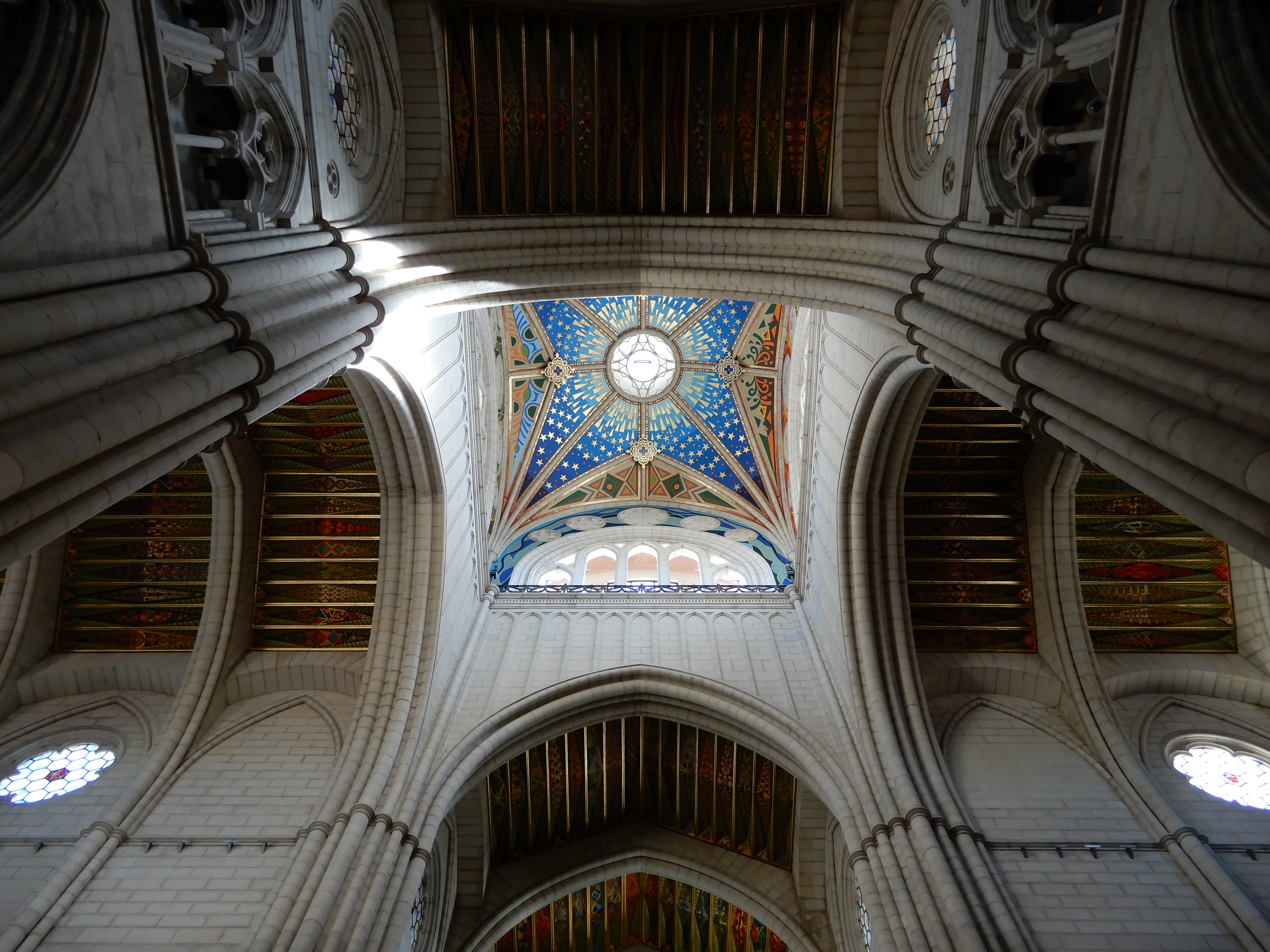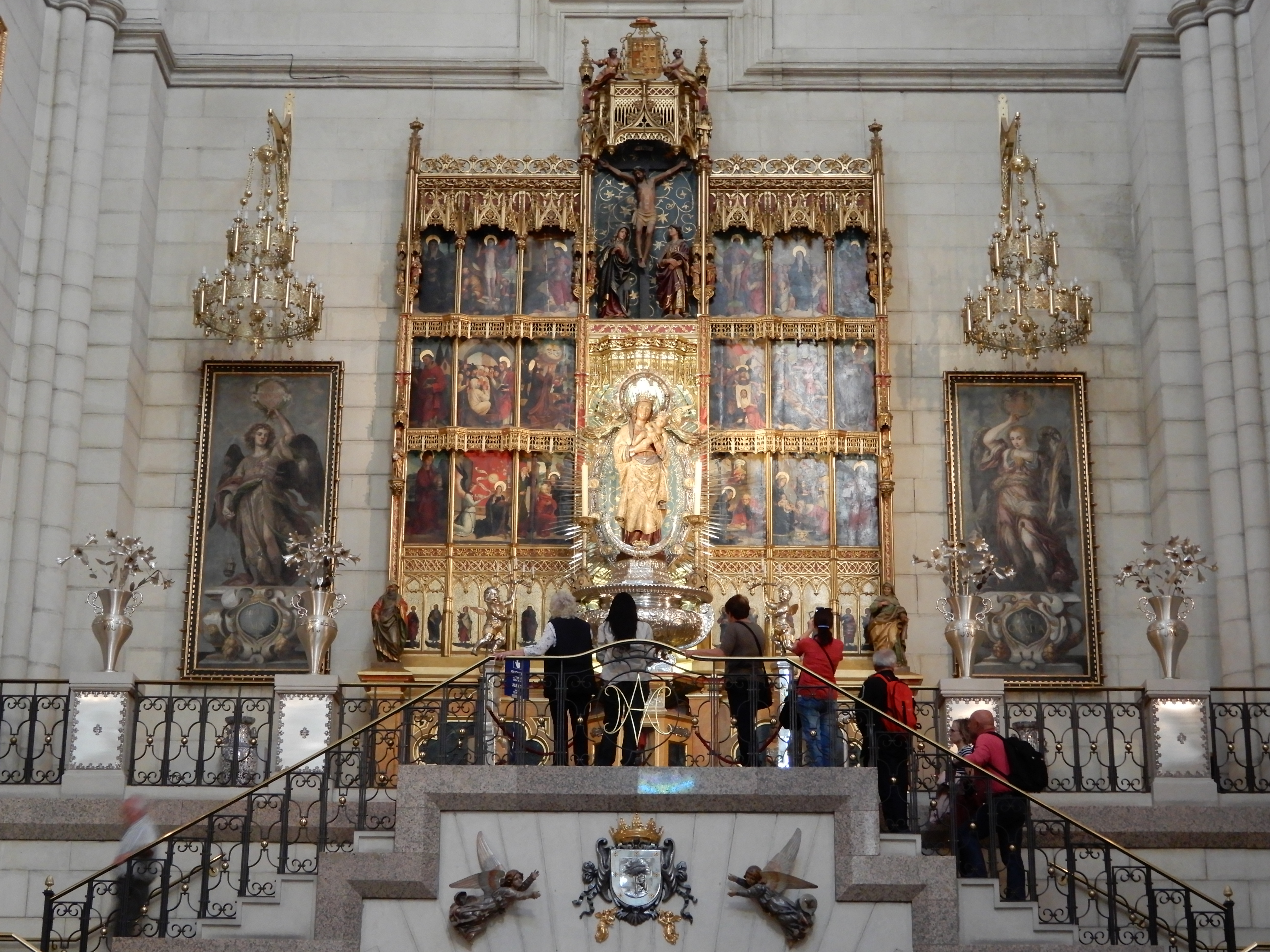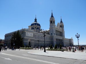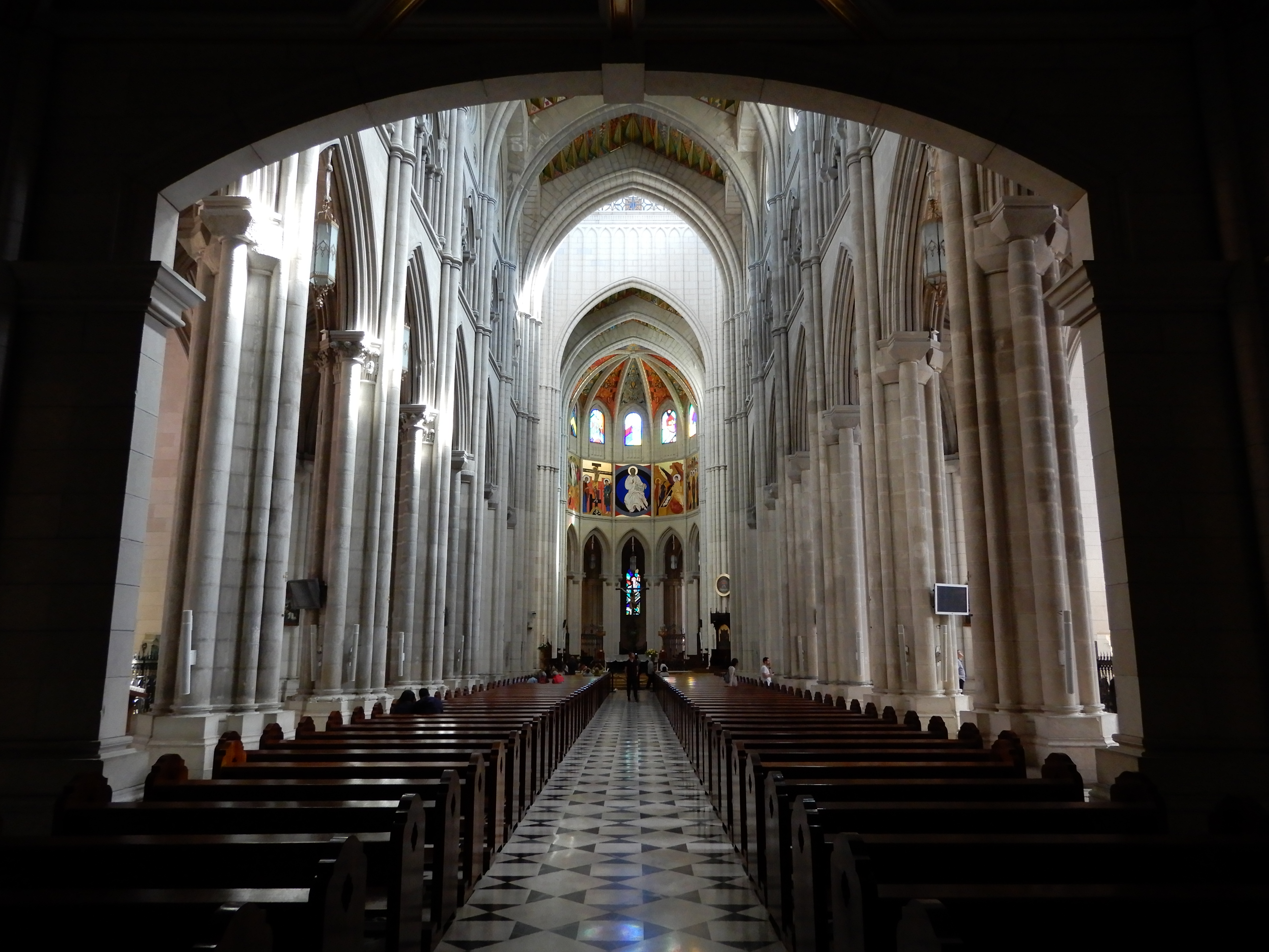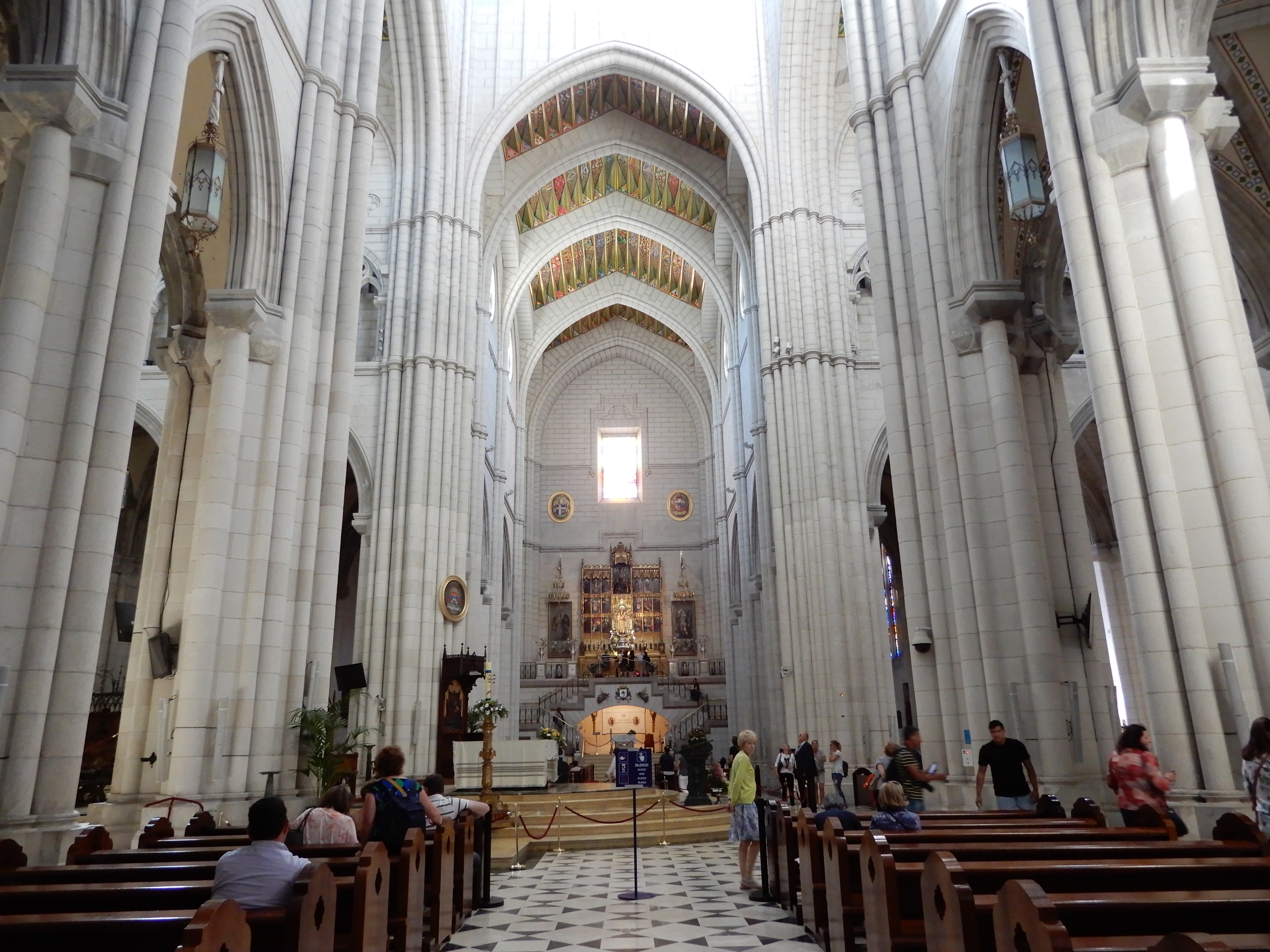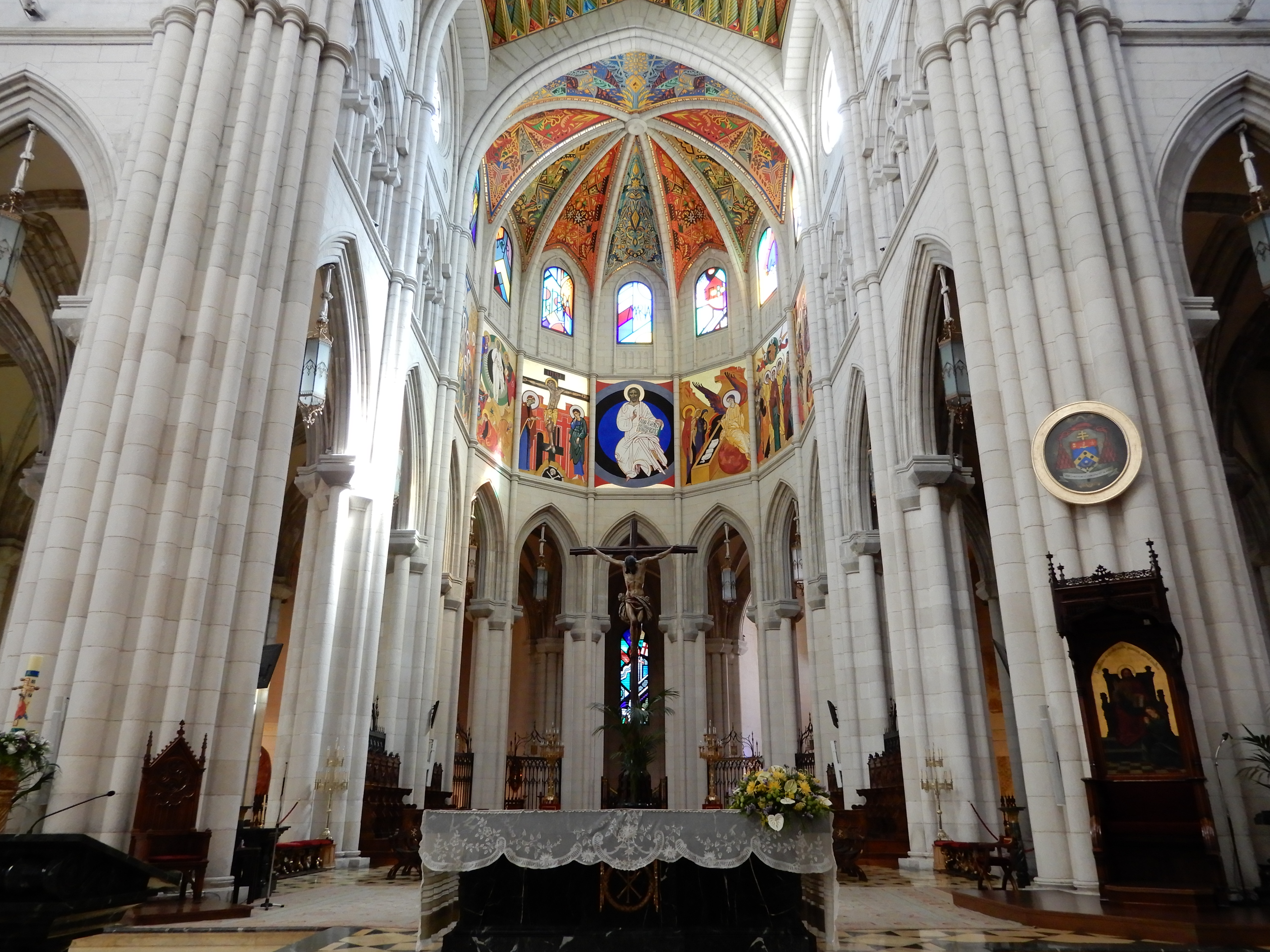 Next to the Palace is the Cathedral de la Almudena. Photography is allowed inside and it is a beautiful blend of old and new elements – check out the gallery of photos below. It is also seems a bit asymmetrical for a church. The right transept (when looking towards the apse from the nave) is elaborately decorative while the left transept is basic and now serves as the main entrance.