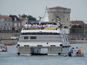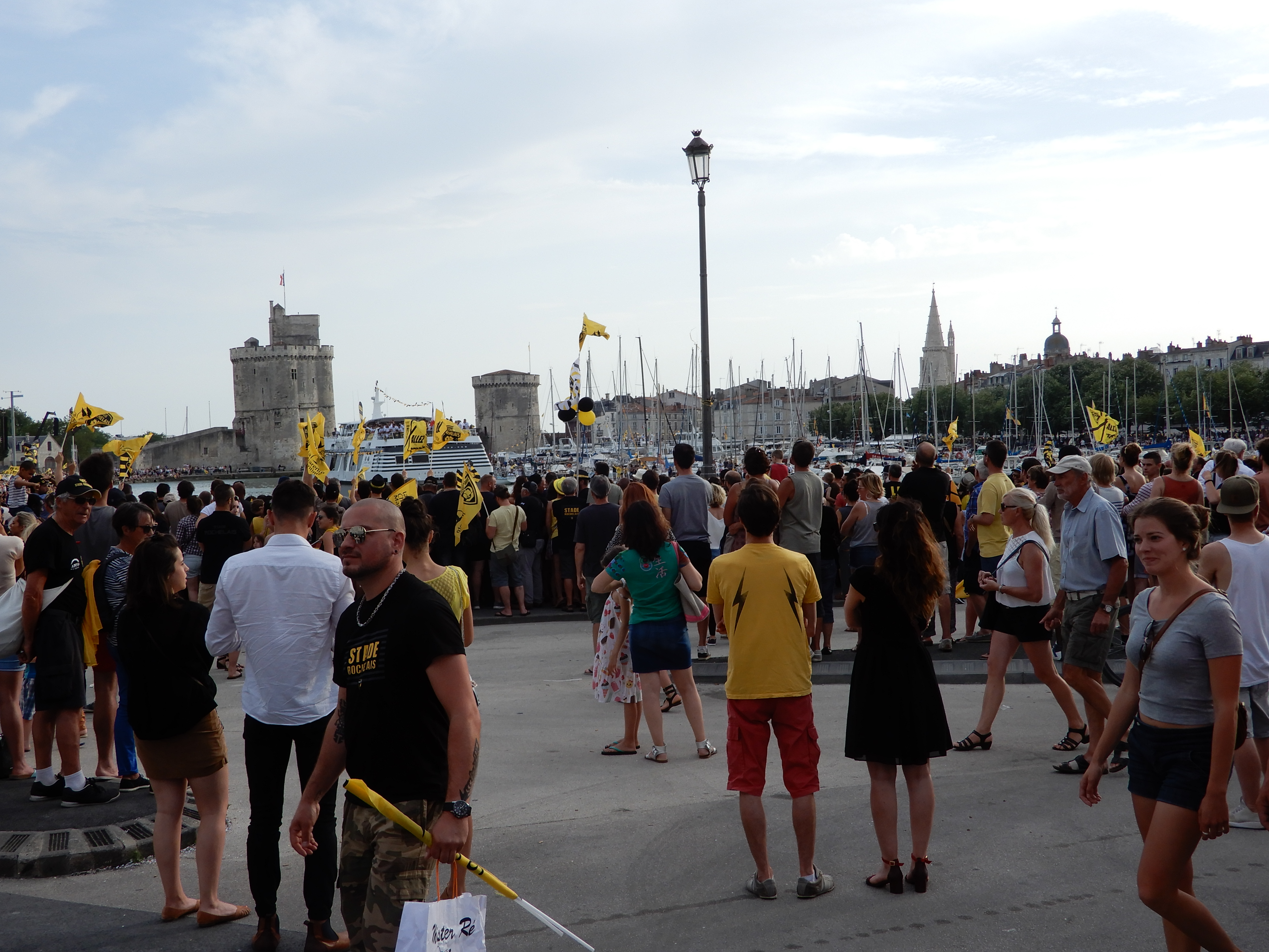 A by-product of this, was that while their English was not that extensive, they really wanted to share with me how important this was, to the point where they were really searching for the right words in English, speaking very slowly in French (the way I like it), and calling over another friend who spoke a little better English. When I mentioned that I knew a bit about rugby and that my daughter had played for a while in high school, that only extended the conversation further and deeper. And naturally, when your team is from La Rochelle, they make their triumphant return via boat through the towers into the old port.