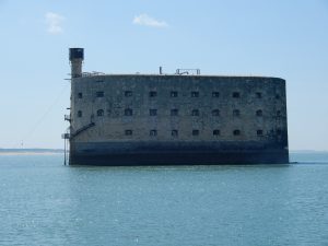 Today, Thursday, was the day for a jaunt to the Île d’Aix which is the smallest of the three islands that lie off the coast of La Rochelle. It is something that was on my wish list for this visit as well as something that I figured would receive cooperation from my feet. Five years ago when I first visited La Rochelle, I took the bus over the bridge to the Île de Ré which is the most popular of the three islands and a vacation destination for the French. On the boat ride over, one goes by Fort Boyard which apparently by the time it was finished, was obsolete militarily. It then saw use for a time as a prison and most recently as a set for a television show.