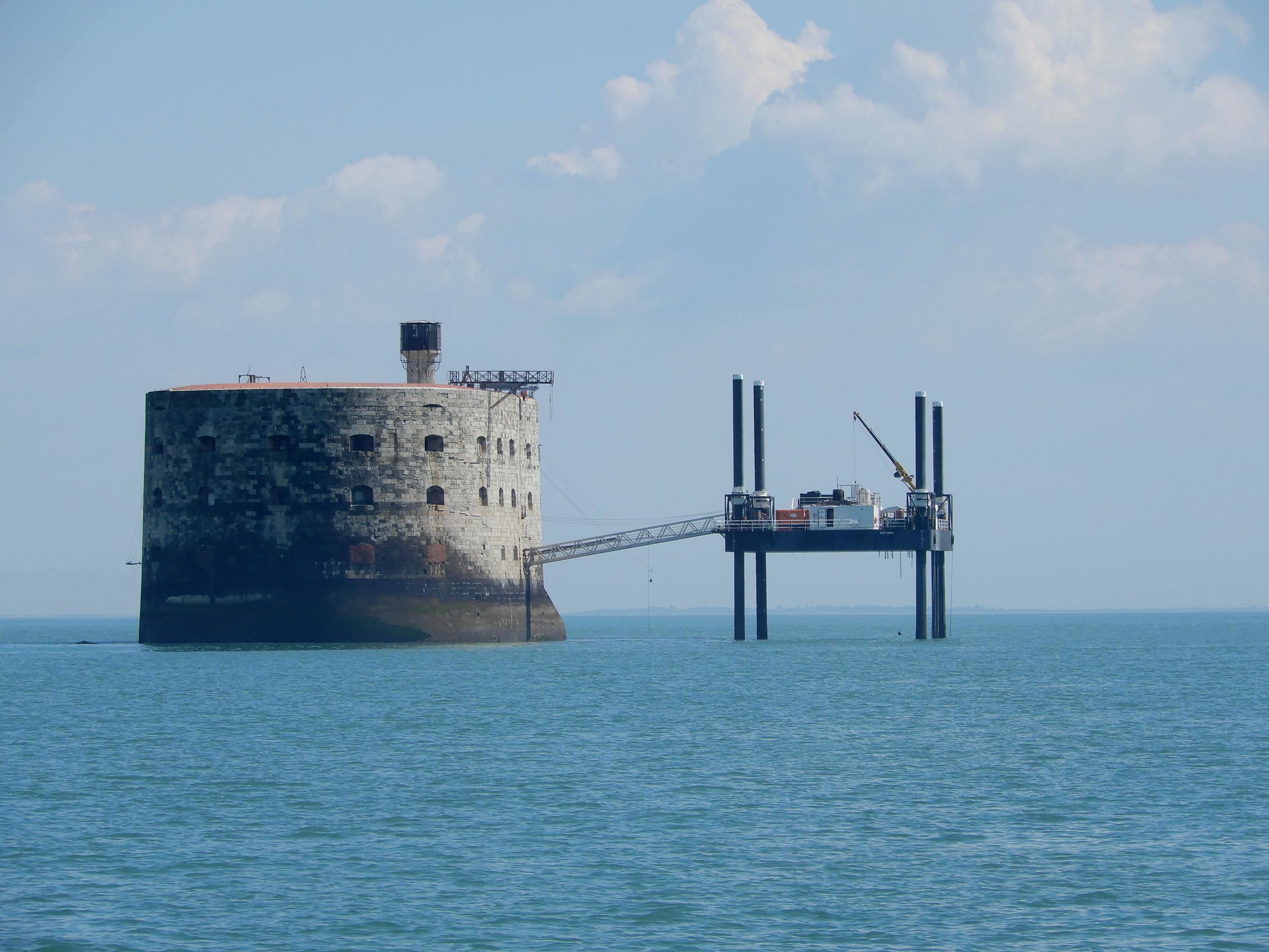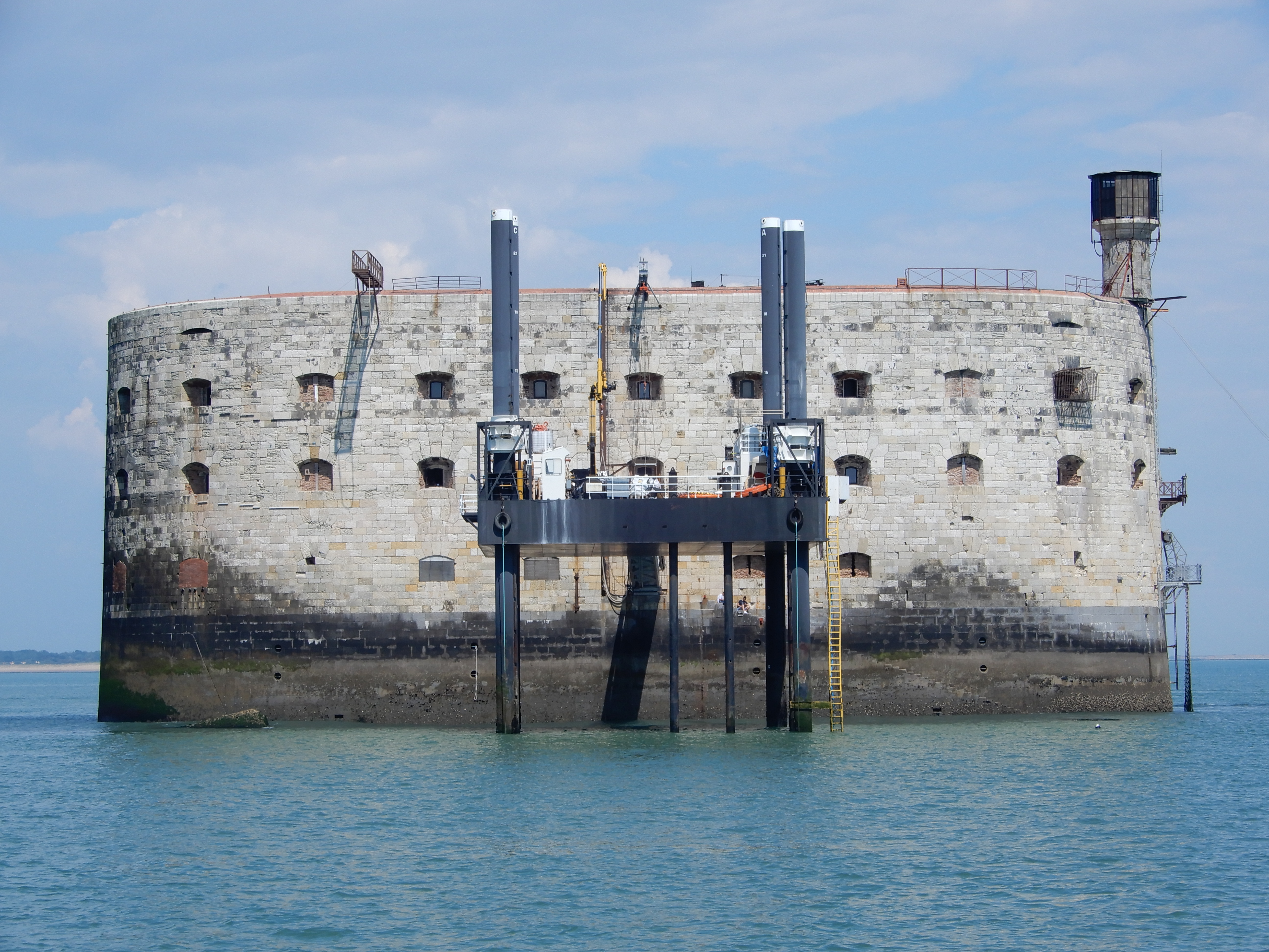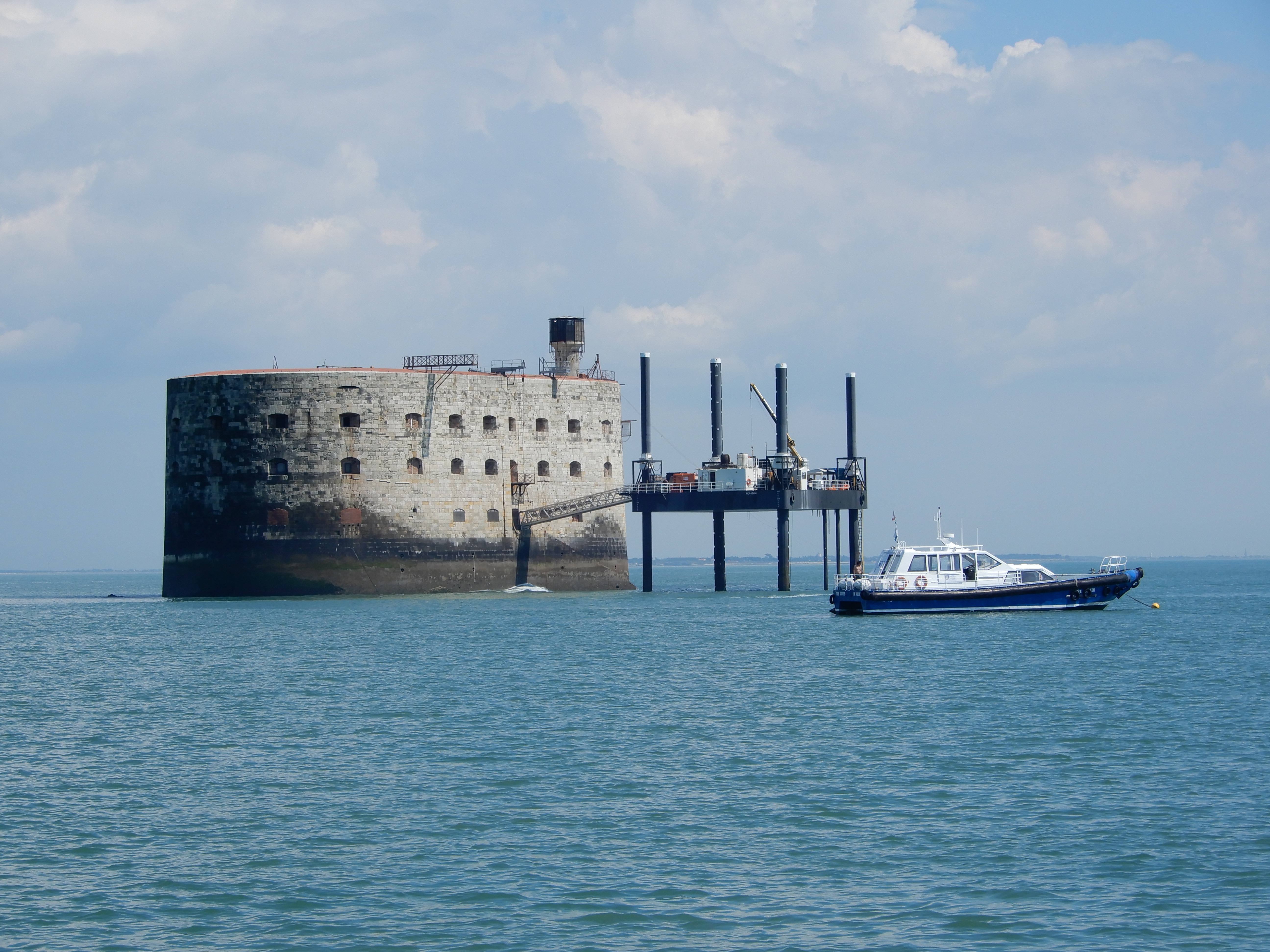 Today, Thursday, was the day for a jaunt to the Île d’Aix which is the smallest of the three islands that lie off the coast of La Rochelle. It is something that was on my wish list for this visit as well as something that I figured would receive cooperation from my feet. Five years ago when I first visited La Rochelle, I took the bus over the bridge to the Île de Ré which is the most popular of the three islands and a vacation destination for the French. On the boat ride over, one goes by Fort Boyard which apparently by the time it was finished, was obsolete militarily. It then saw use for a time as a prison and most recently as a set for a television show.