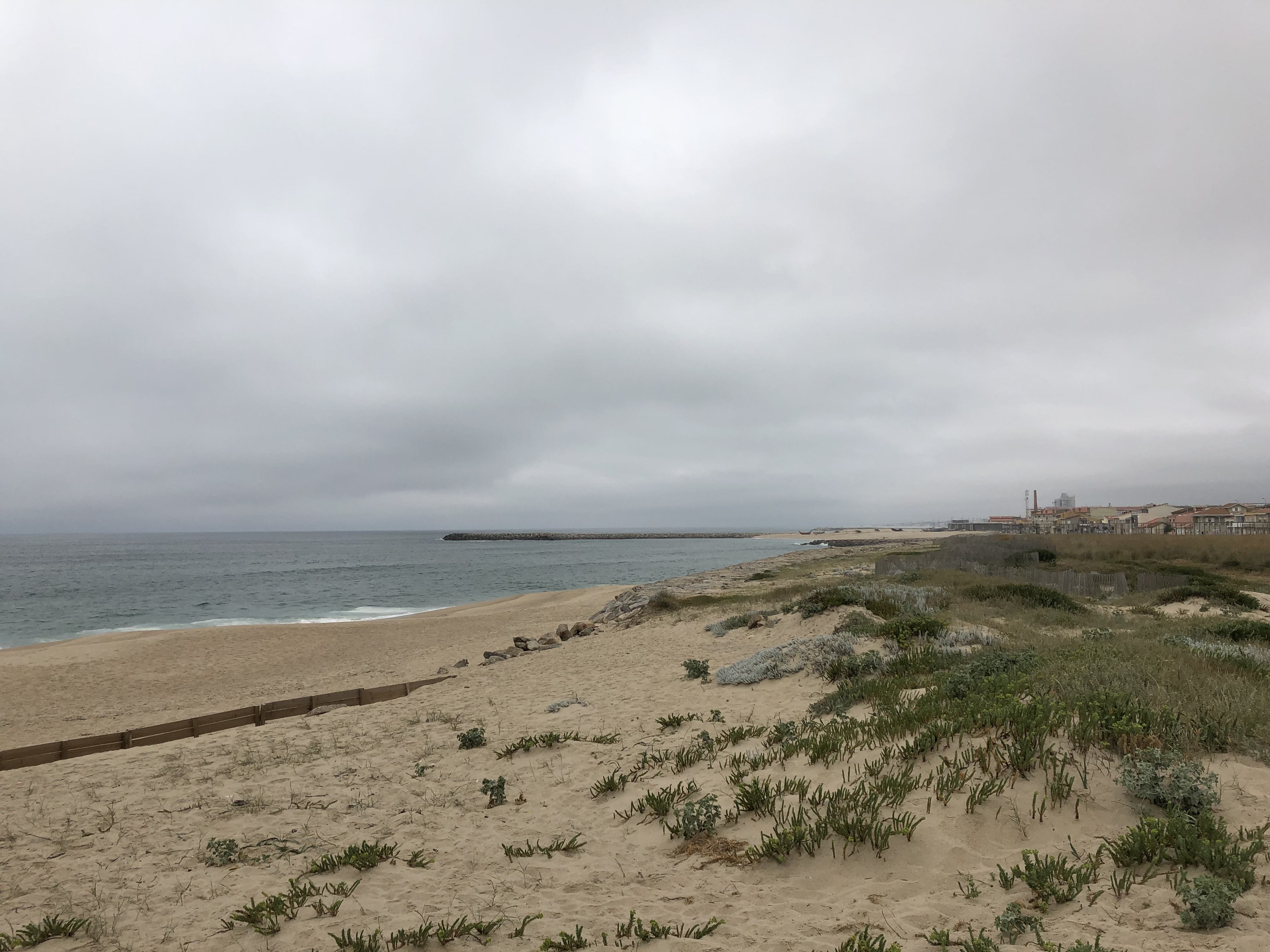 There are several beaches along the coast of Espinho – some 12 kilometers (almost 7.5 miles) in total. Beautiful, wide swaths of sand with pounding, crashing waves – maybe not the easiest for swimming. As one heads away from the most popular beaches nearest the main part of town, coastal grasses provide a more varied landscape to the remoter beaches – thus a bit of choice for the beach goer.