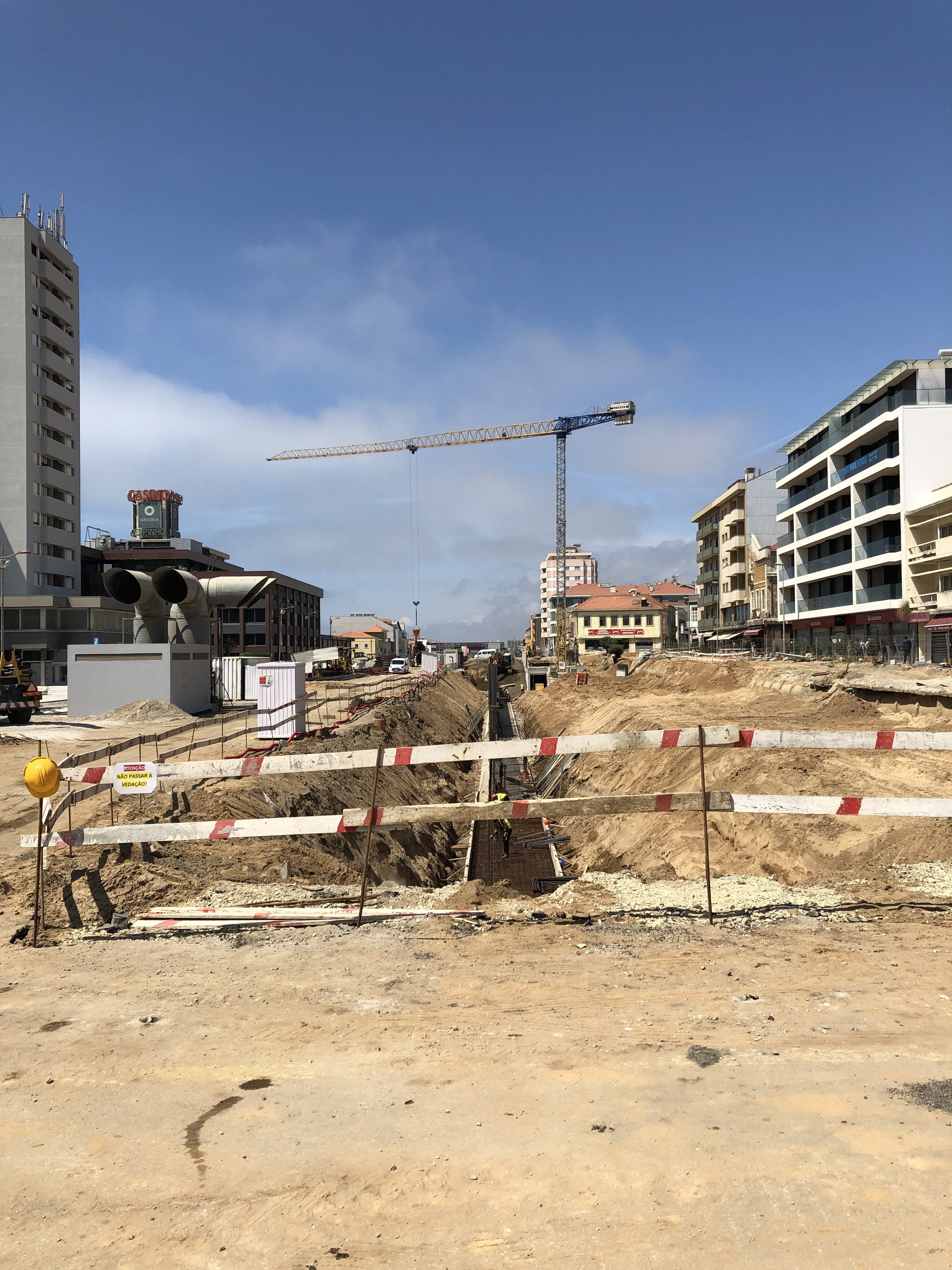 One thing to understand about Espinho. This is primarily a beach destination for the Portugese. Not too many non-Portugese around – have run into a few Americans and Brits but not near the prercentage of foreign tourists as in the Algarve and Lisboa. However, there is quite a bit of construction going on near the beach with the biggest being what I call the “Big Dig” – the project to put the train tracks underground so as not to bisect the beach area from the rest of the city. In addition, the city has already established some pedestrian only streets close to the beach to apparently facilitate a more gentle shopping experience.