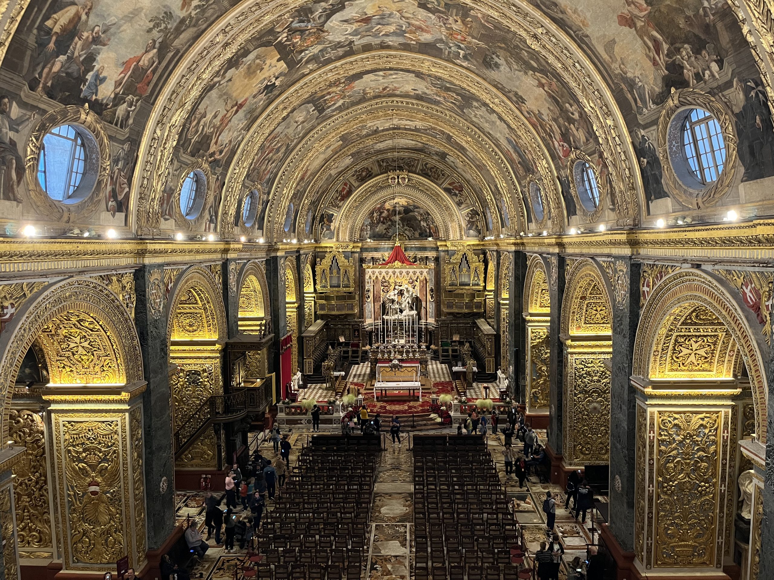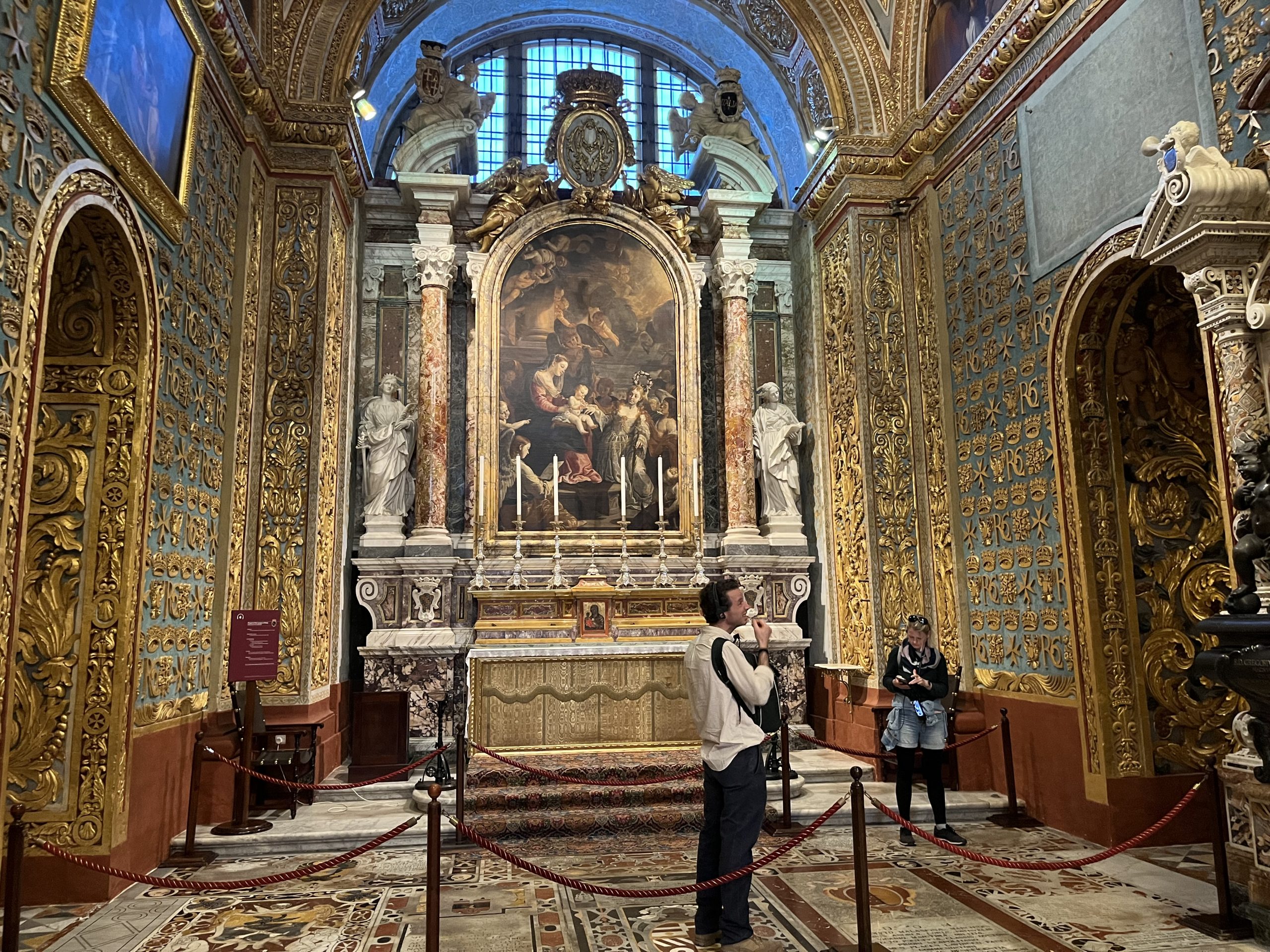 Towards the center of Valletta can be found St John’s Co-Cathedral which was built by the Knights Hospitaller. The exterior of the cathedral is not particularly awe-inspiring in my opinion, but the interior is a visual overload. One of the interesting aspects of the cathedral are the nine chapels within, of which eight are specific to the European regions from which the knights originated (for example, France, Germany, Italy, etc). I had also hoped to tour the Grand Master’s Palace which now serves as the office of the president of Malta. Unfortunately, it is closed for renovations.