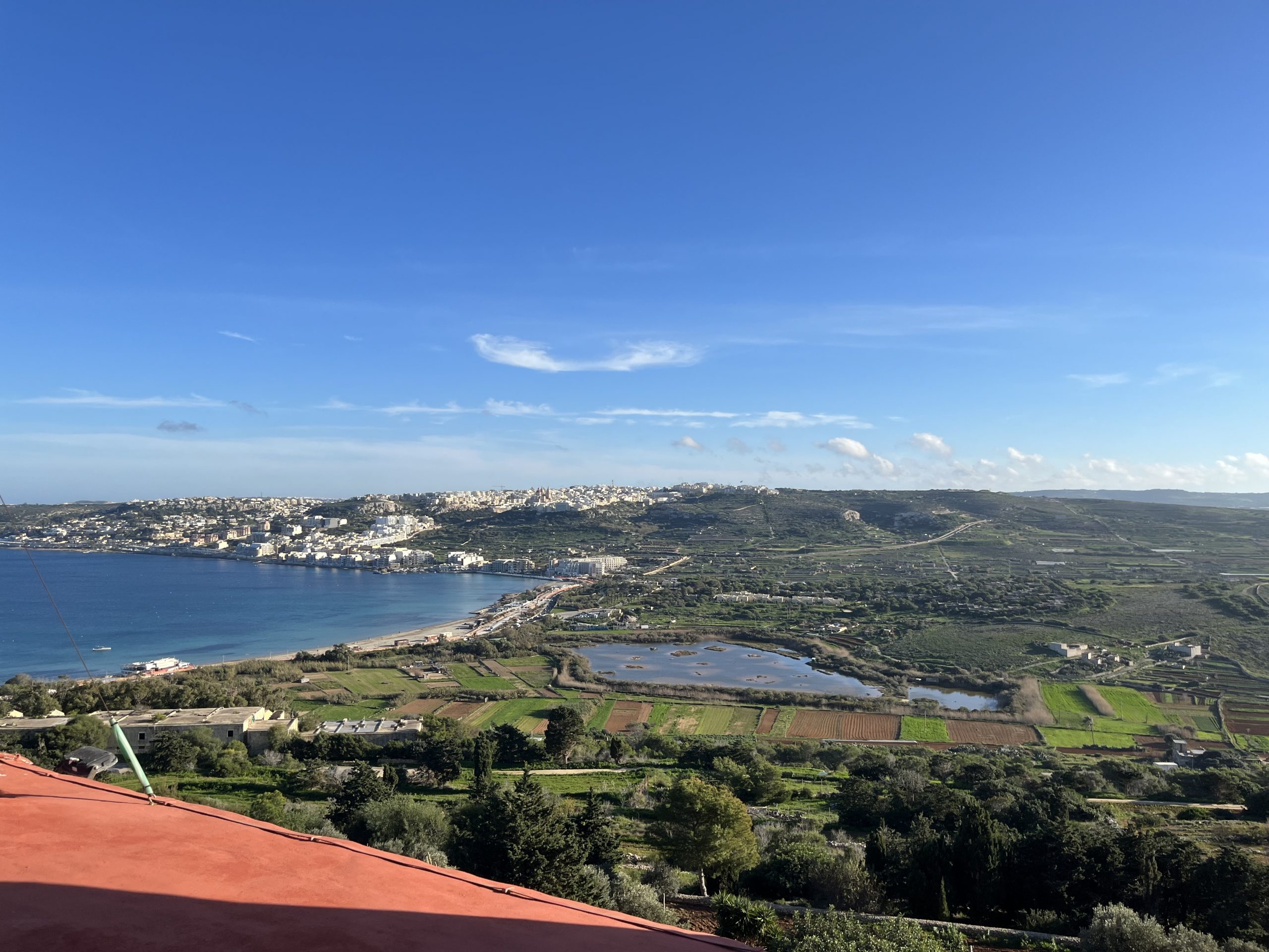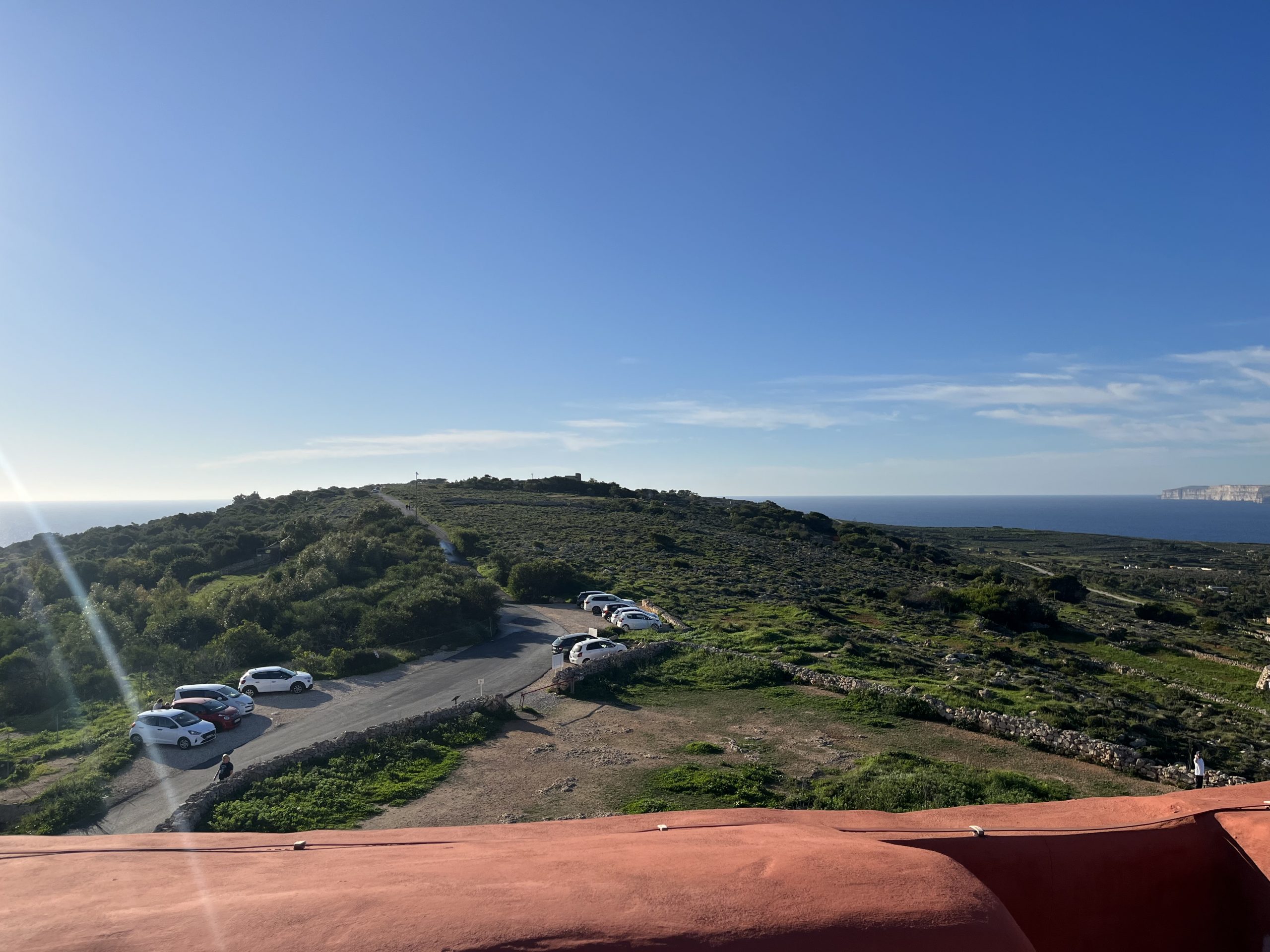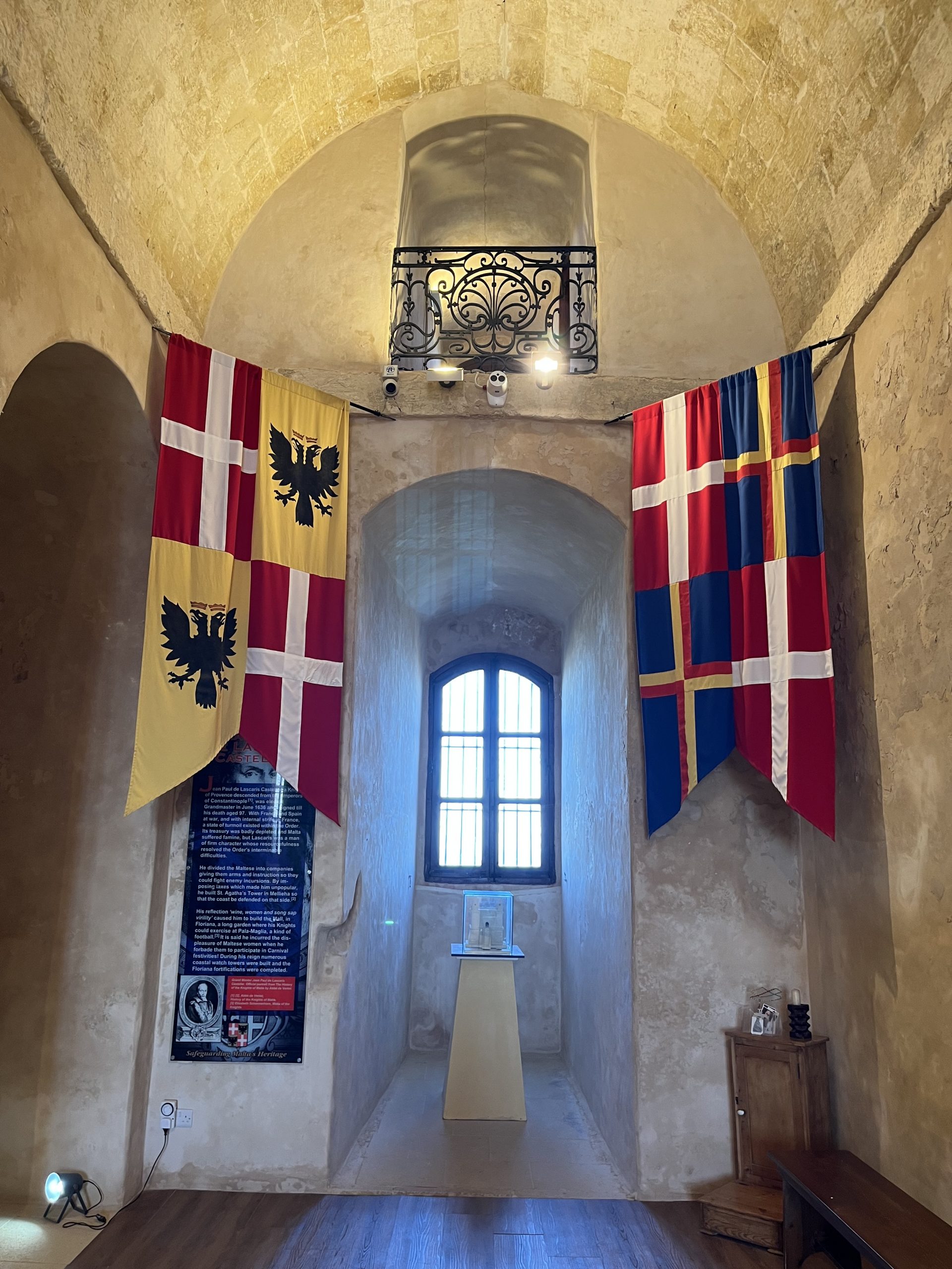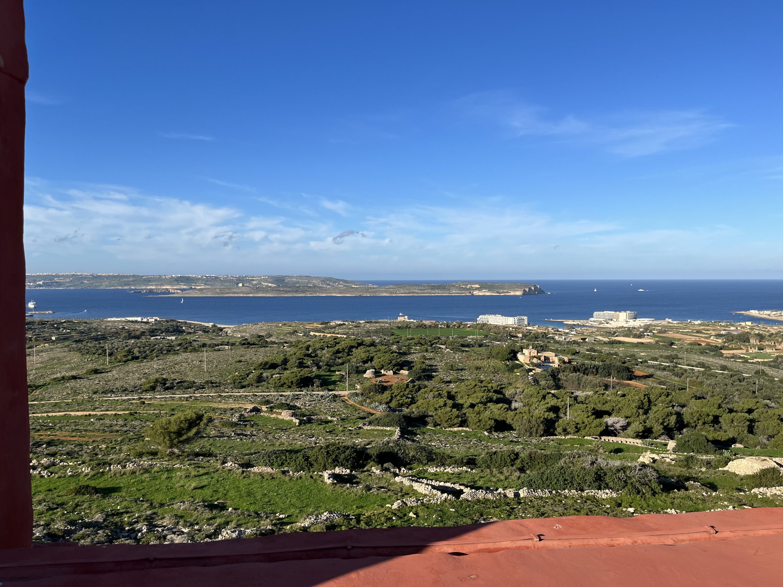 At the north end of the main island of Malta past the town of Mellieha is the Red Tower. It was one (if not the most colorful) of a series of defensive towers on the inhabited islands. From the tower, one can see Comino (population of two or three) and Gozo (population of 32,000 plus). In addition, other towers are visible, including the White Tower. Most of the towers are simply known by their Maltese name, but a few are also known by the name of a saint. The gallery has a photo of a poster board showing all the towers.