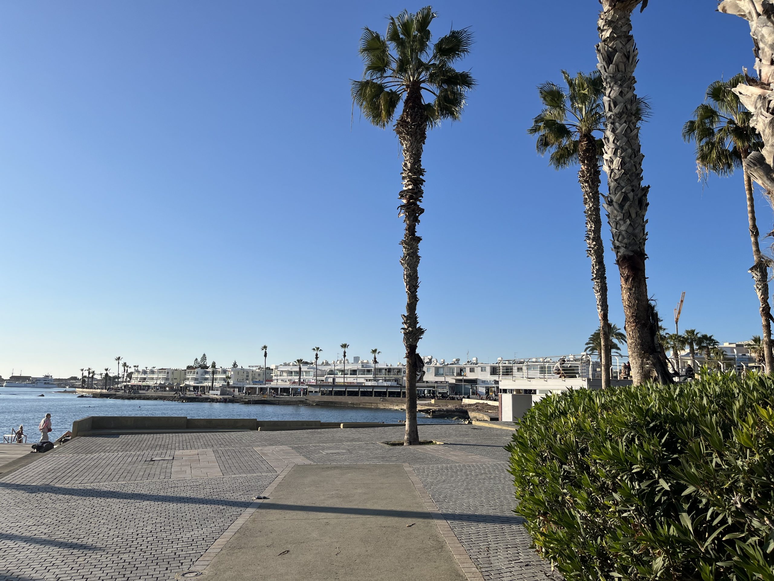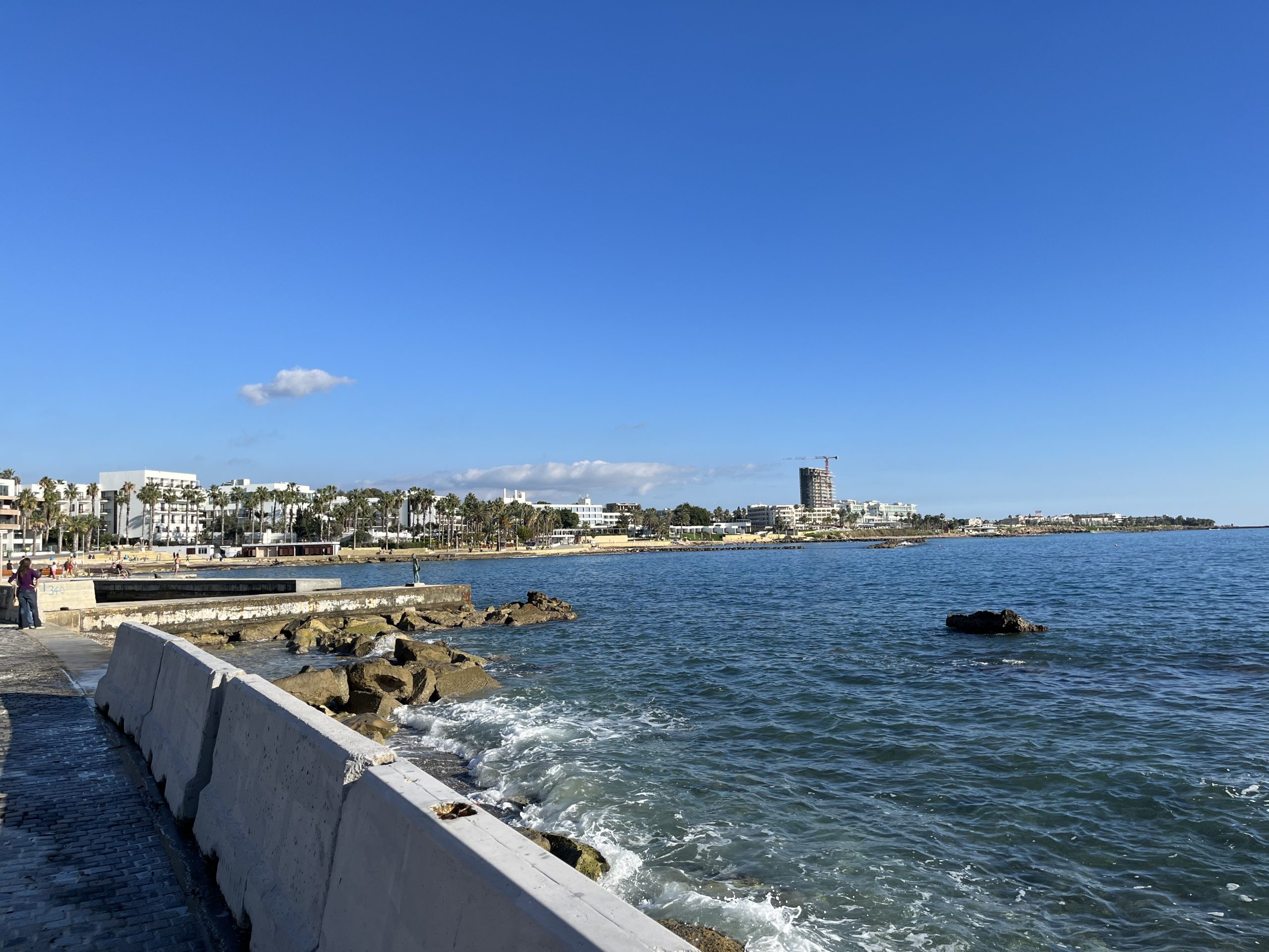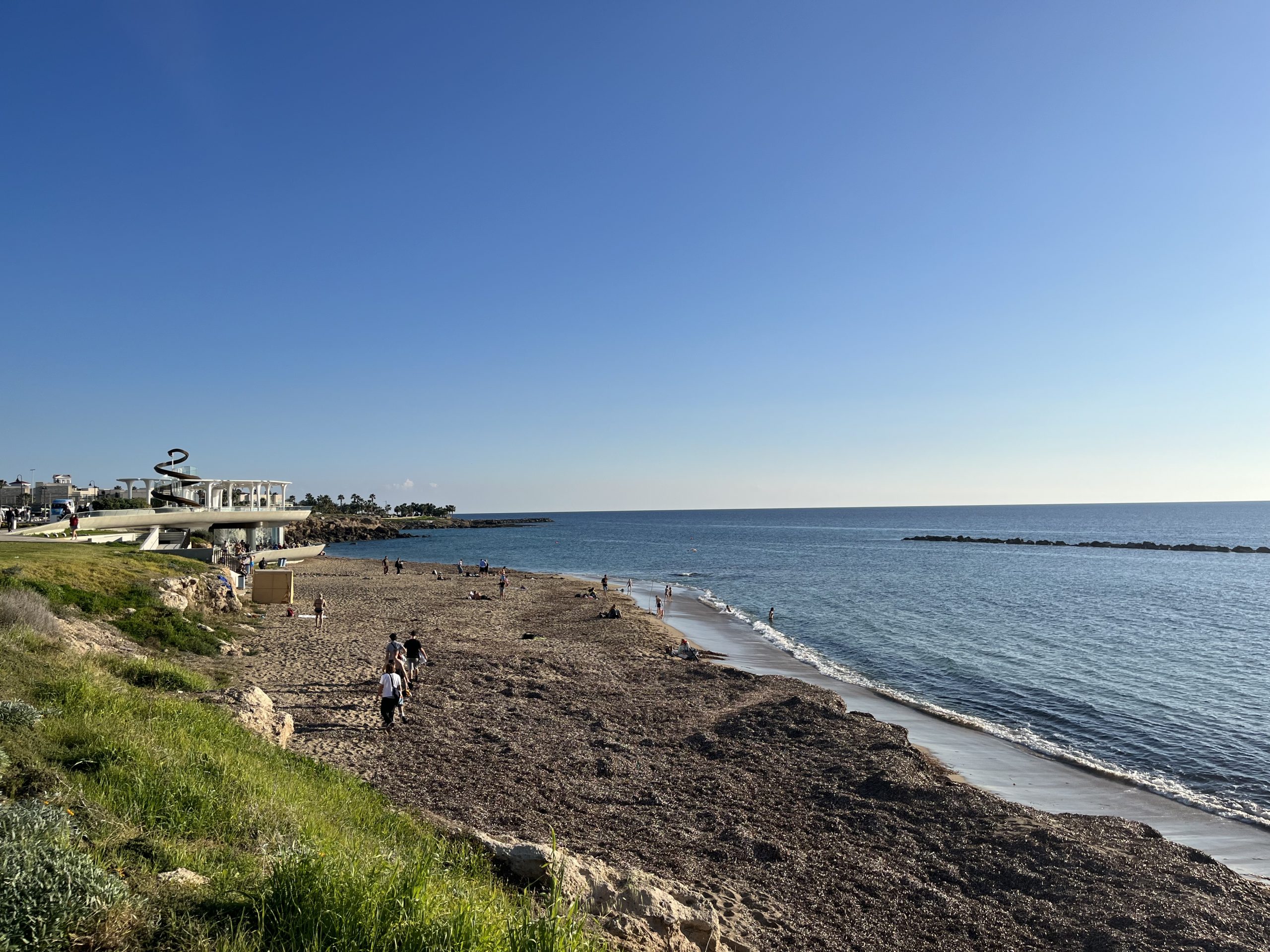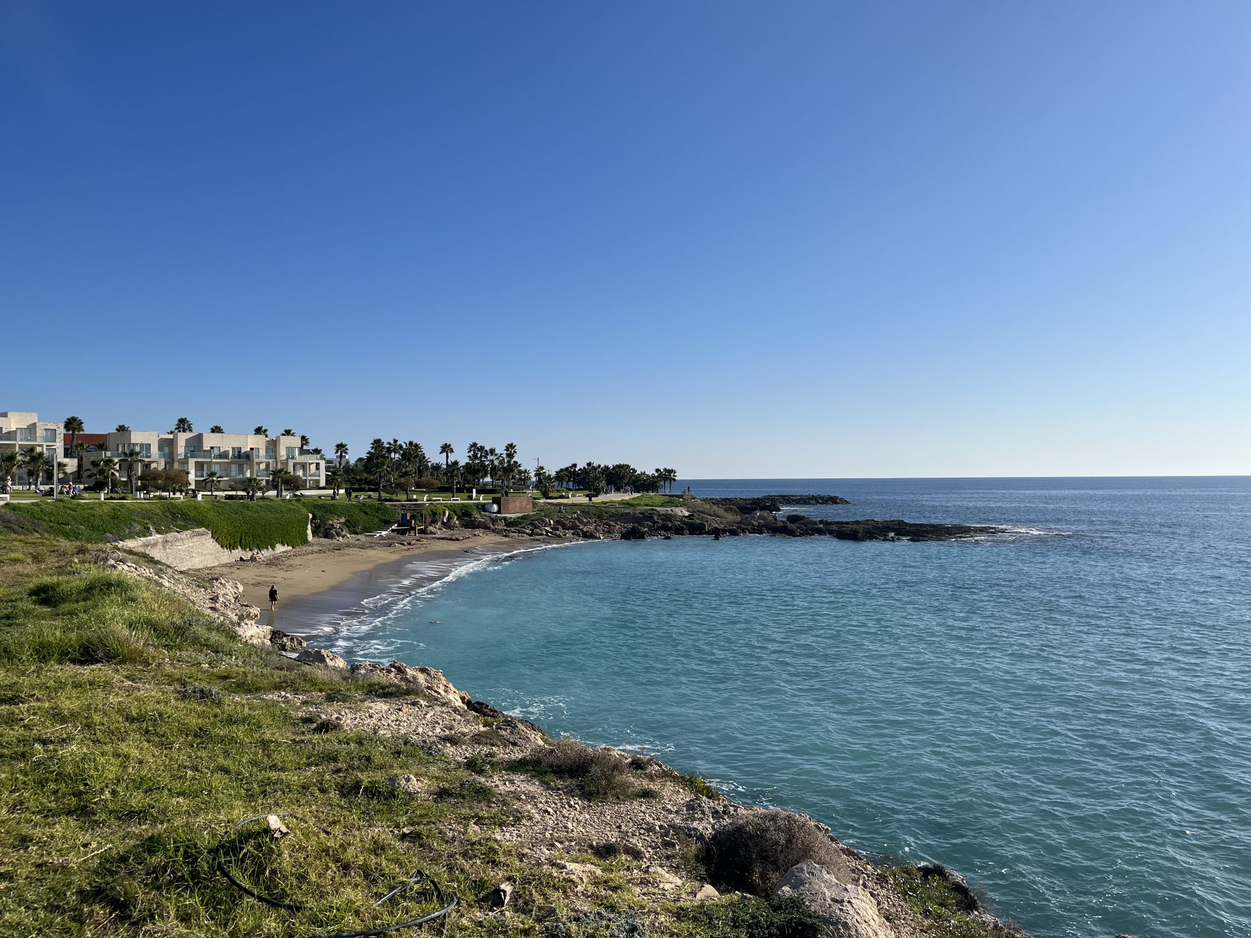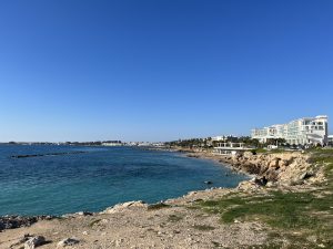 English however, is the second language for both and I have yet to run into a local who doesn’t seamlessly switch between Cypriot Greek and English. As to the weather, quite similar to that in Malta, with the highs during the day being in the sixties, but the lows overnight being a bit cooler than Malta. Paphos feels almost like Southern California to me but with the Greek touches, British right side driving, and residential water towers like in Mexico. The beaches are better than those on Malta, but not of the caliber of those in the Basque Country.