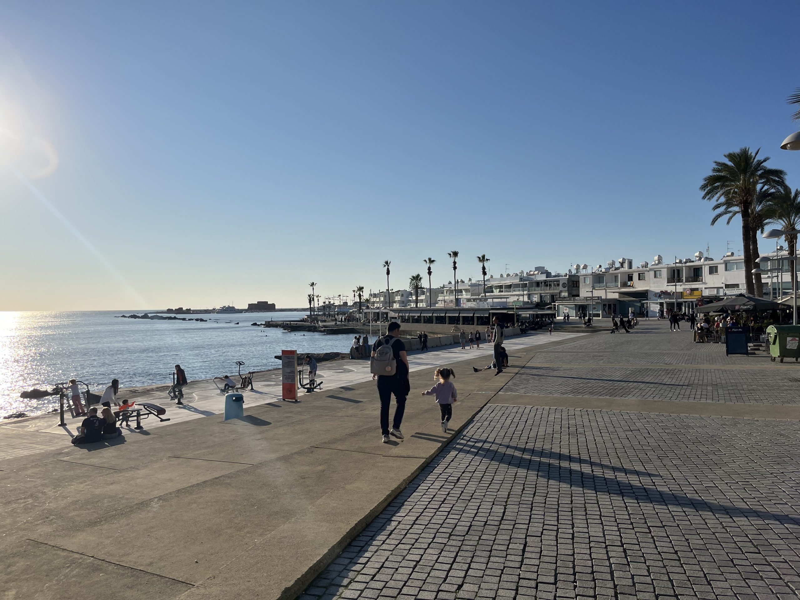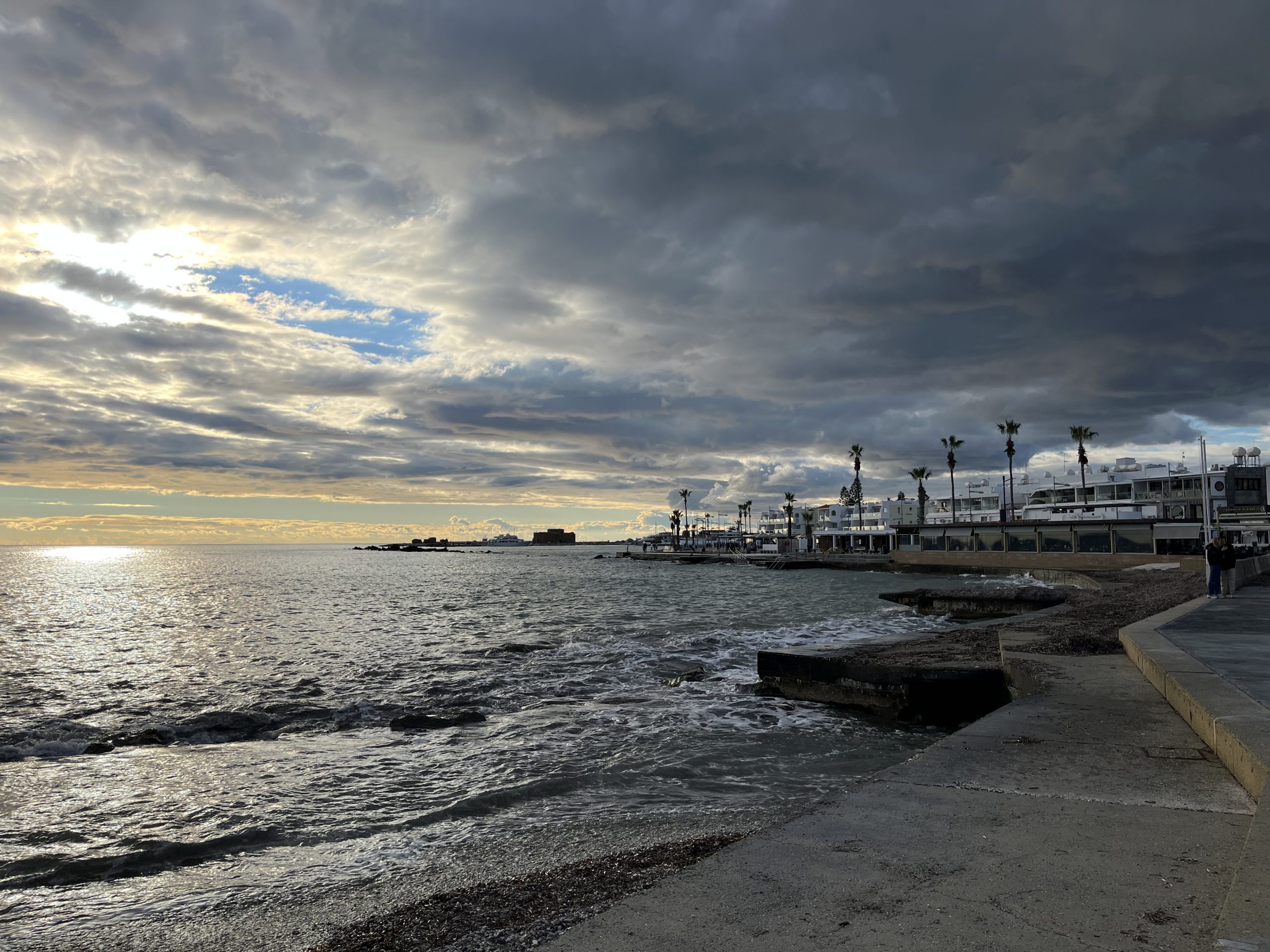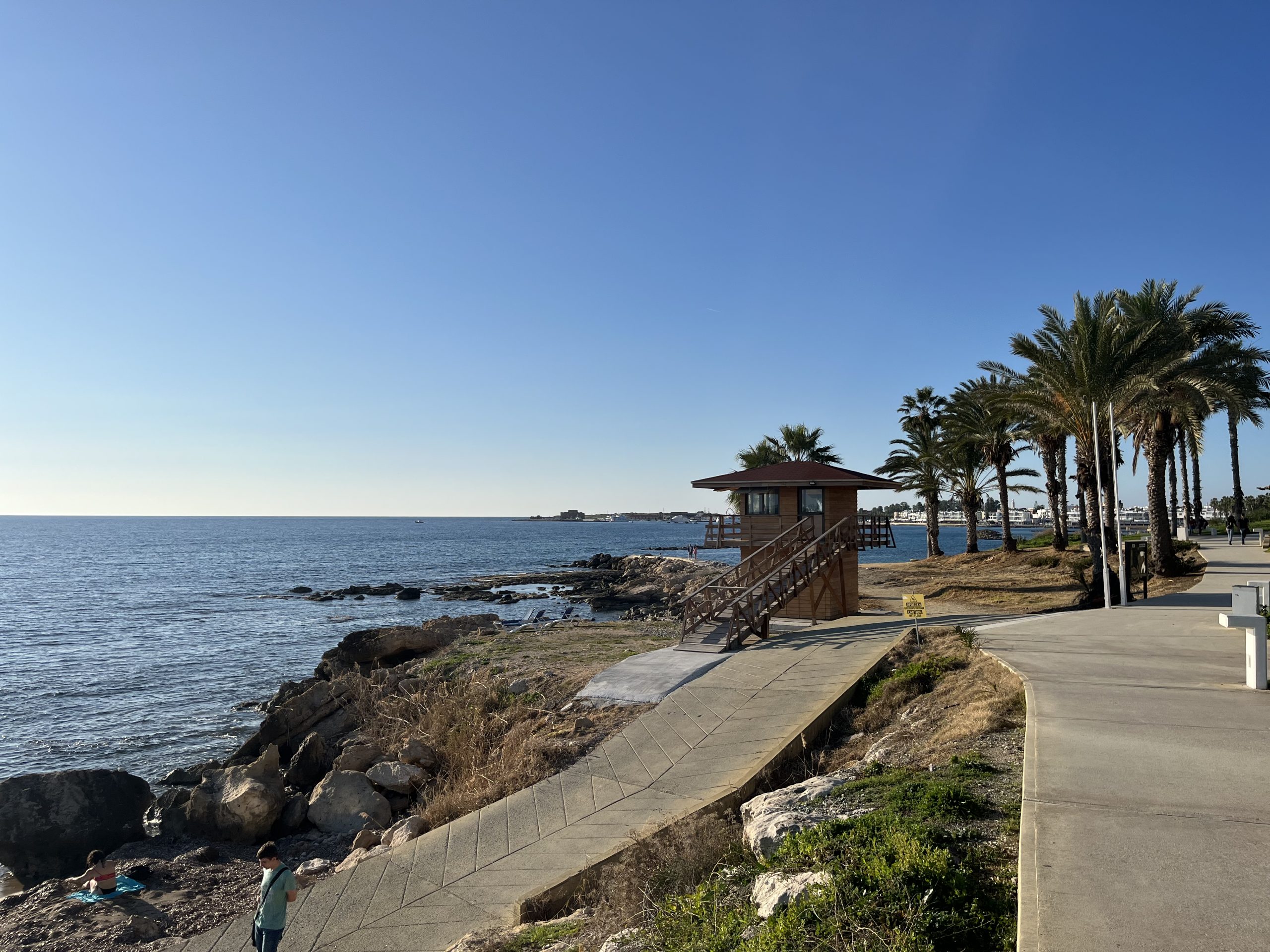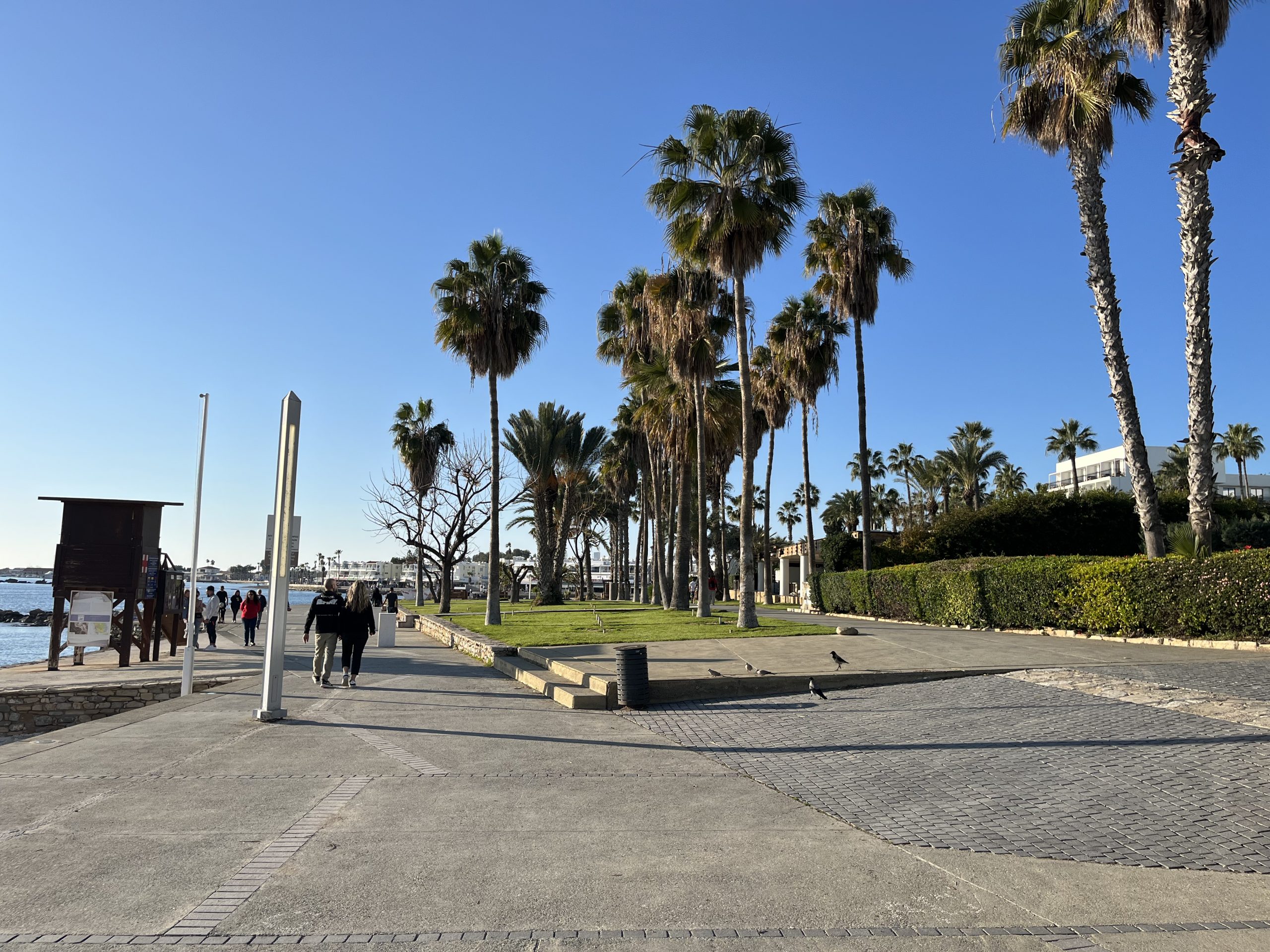English however, is the second language for both and I have yet to run into a local who doesn’t seamlessly switch between Cypriot Greek and English. As to the weather, quite similar to that in Malta, with the highs during the day being in the sixties, but the lows overnight being a bit cooler than Malta. Paphos feels almost like Southern California to me but with the Greek touches, British right side driving, and residential water towers like in Mexico. The beaches are better than those on Malta, but not of the caliber of those in the Basque Country.