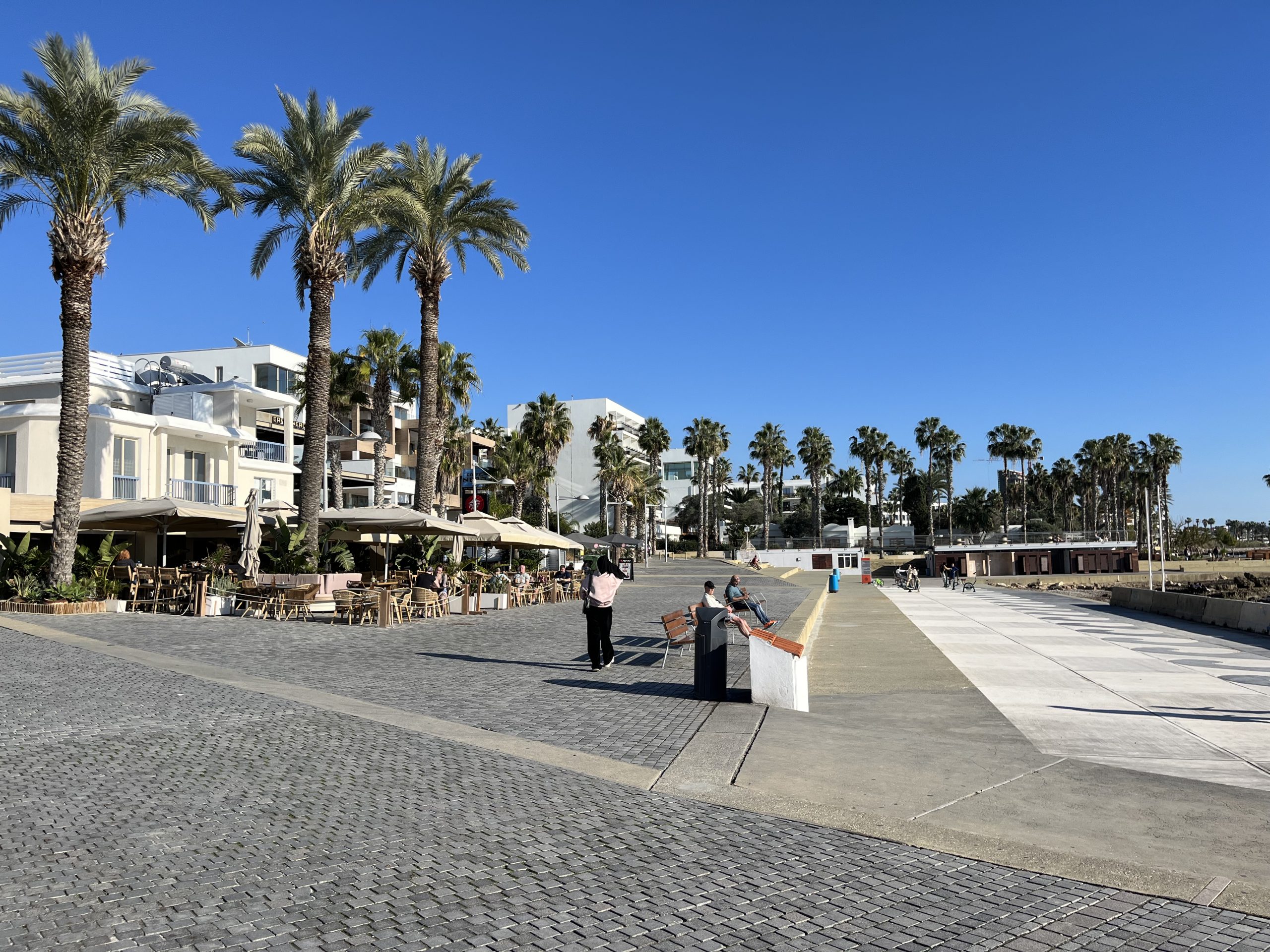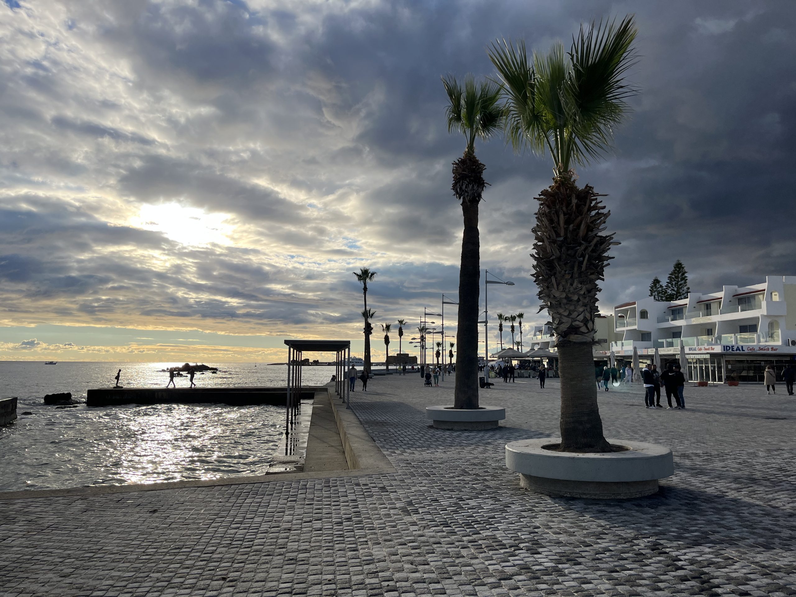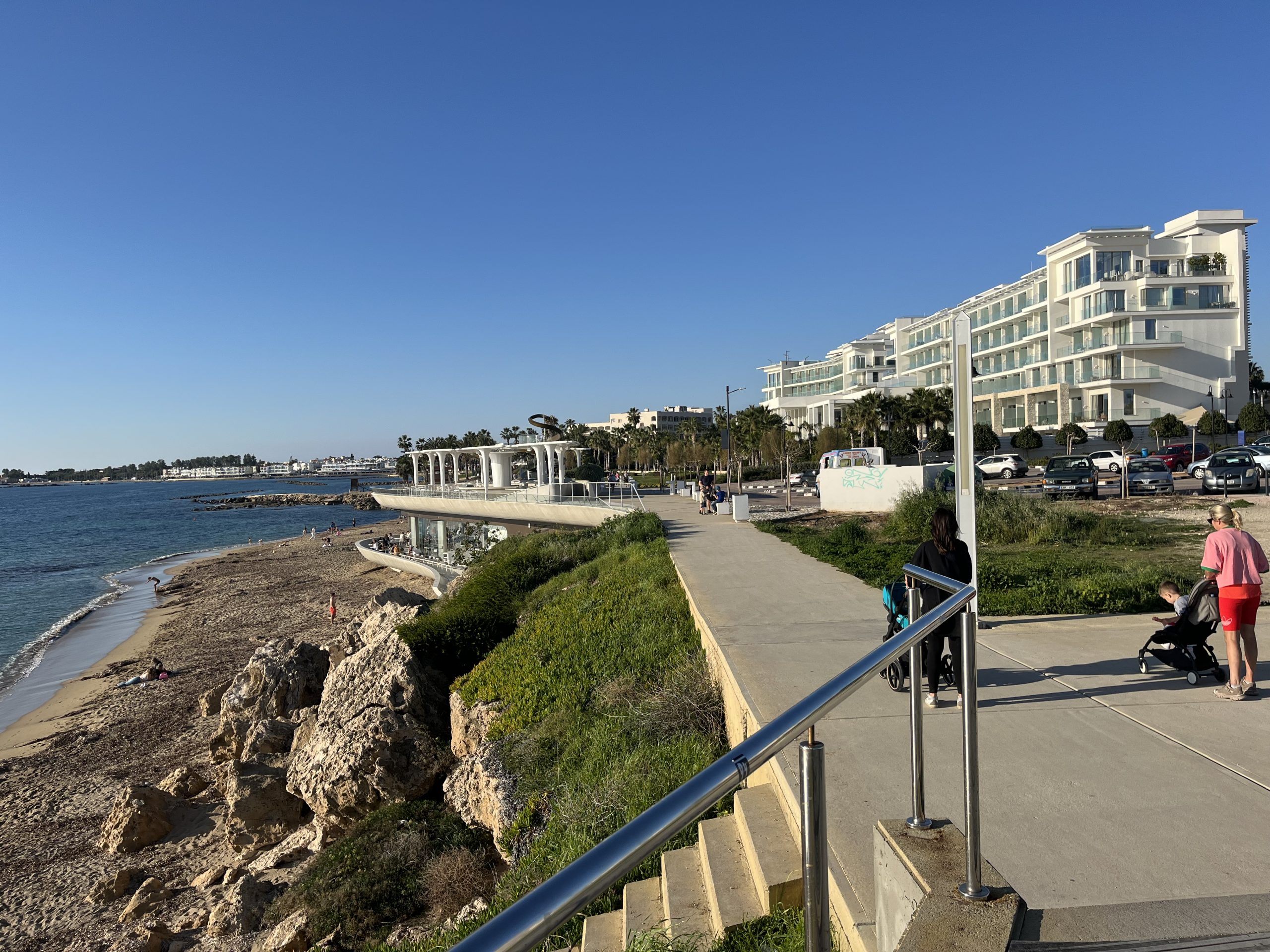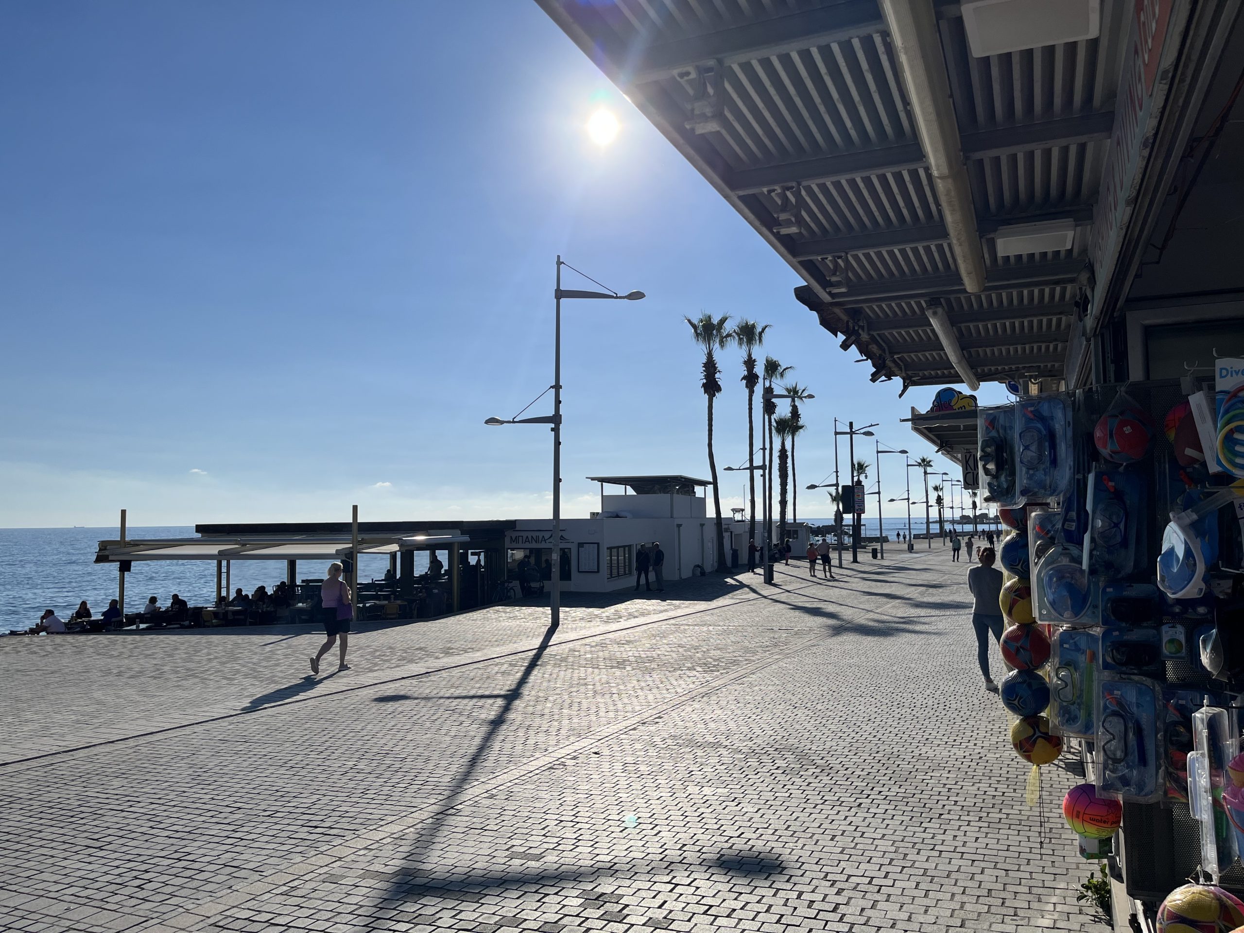 English however, is the second language for both and I have yet to run into a local who doesn’t seamlessly switch between Cypriot Greek and English. As to the weather, quite similar to that in Malta, with the highs during the day being in the sixties, but the lows overnight being a bit cooler than Malta. Paphos feels almost like Southern California to me but with the Greek touches, British right side driving, and residential water towers like in Mexico. The beaches are better than those on Malta, but not of the caliber of those in the Basque Country.