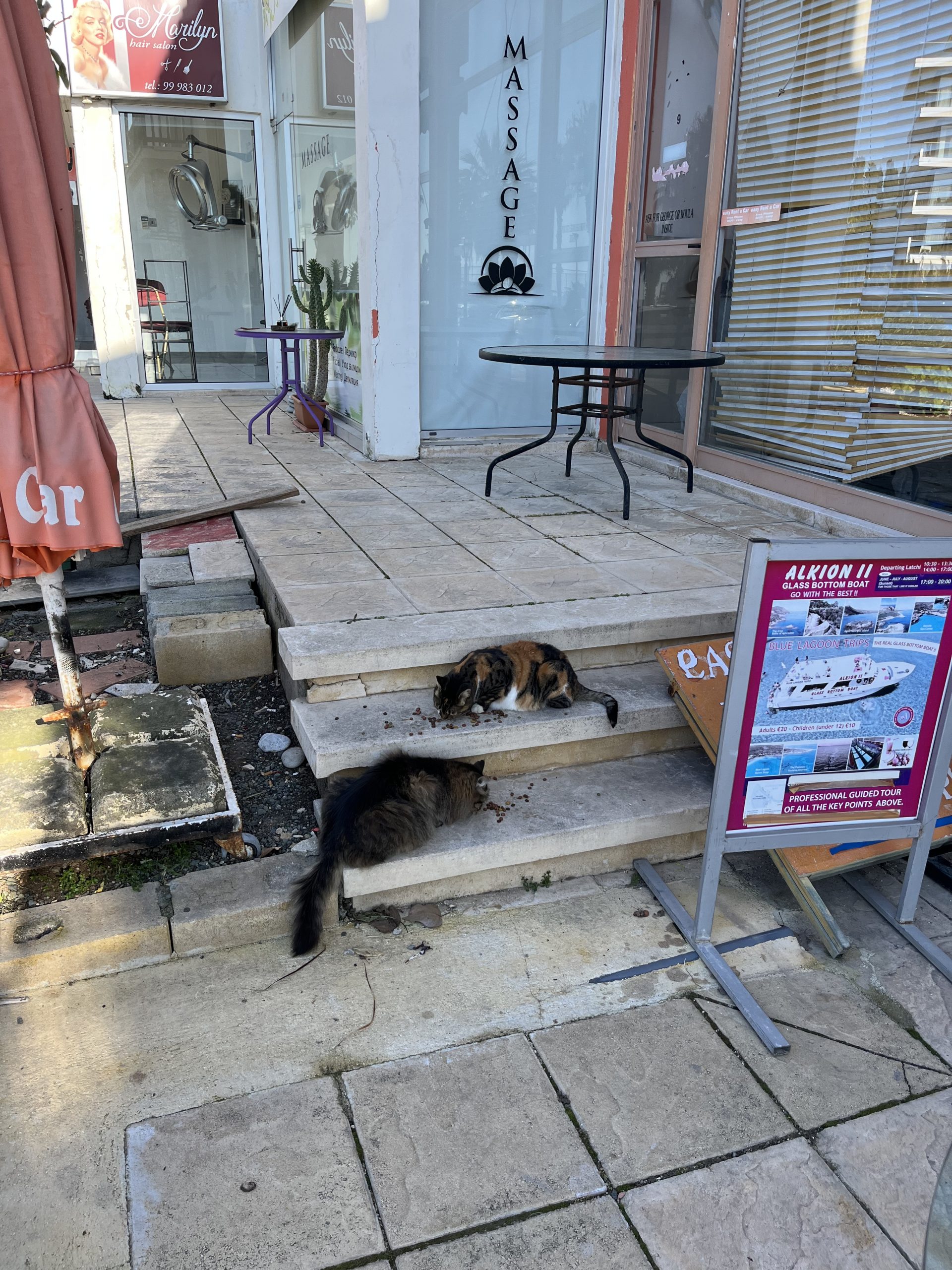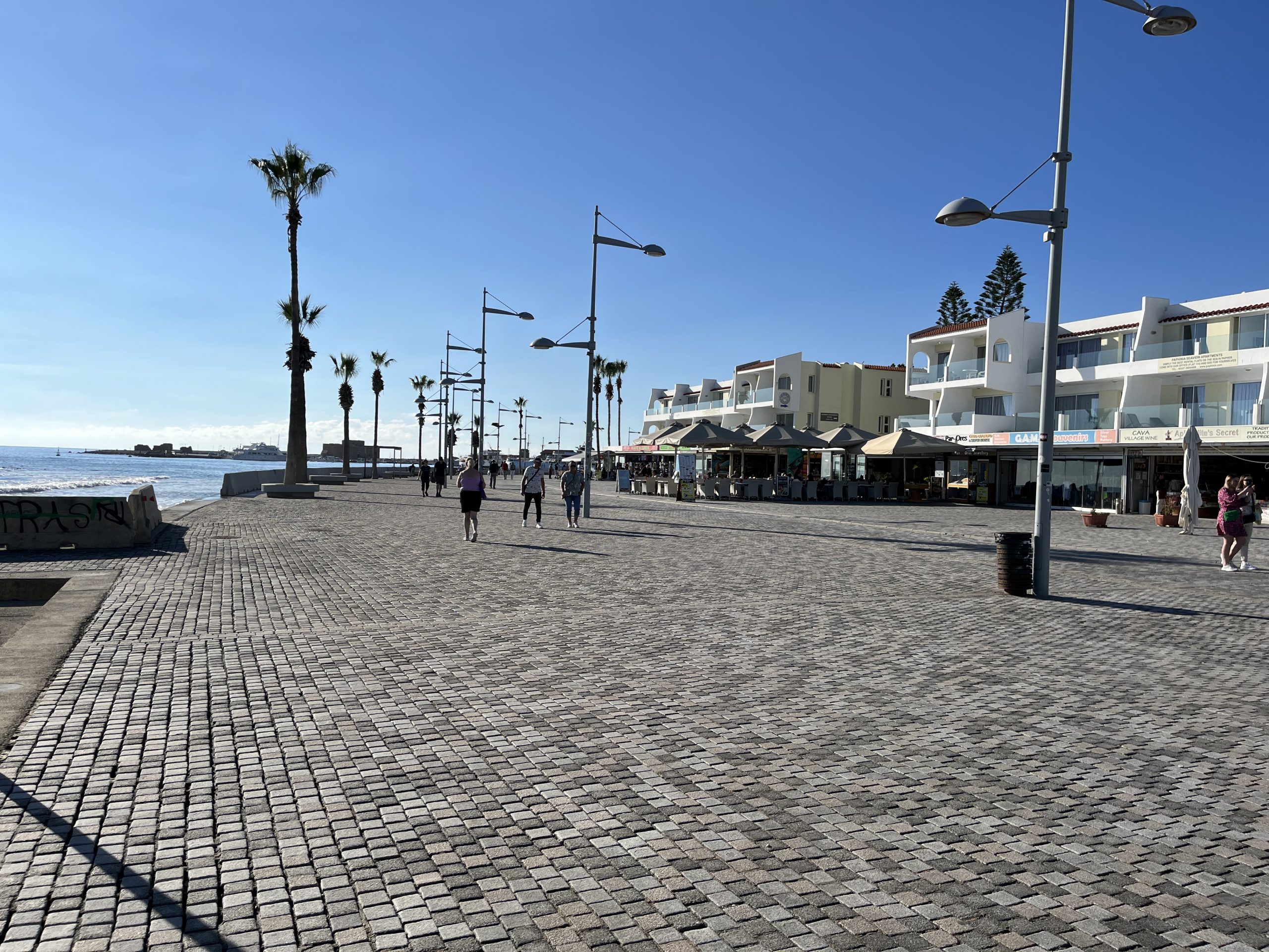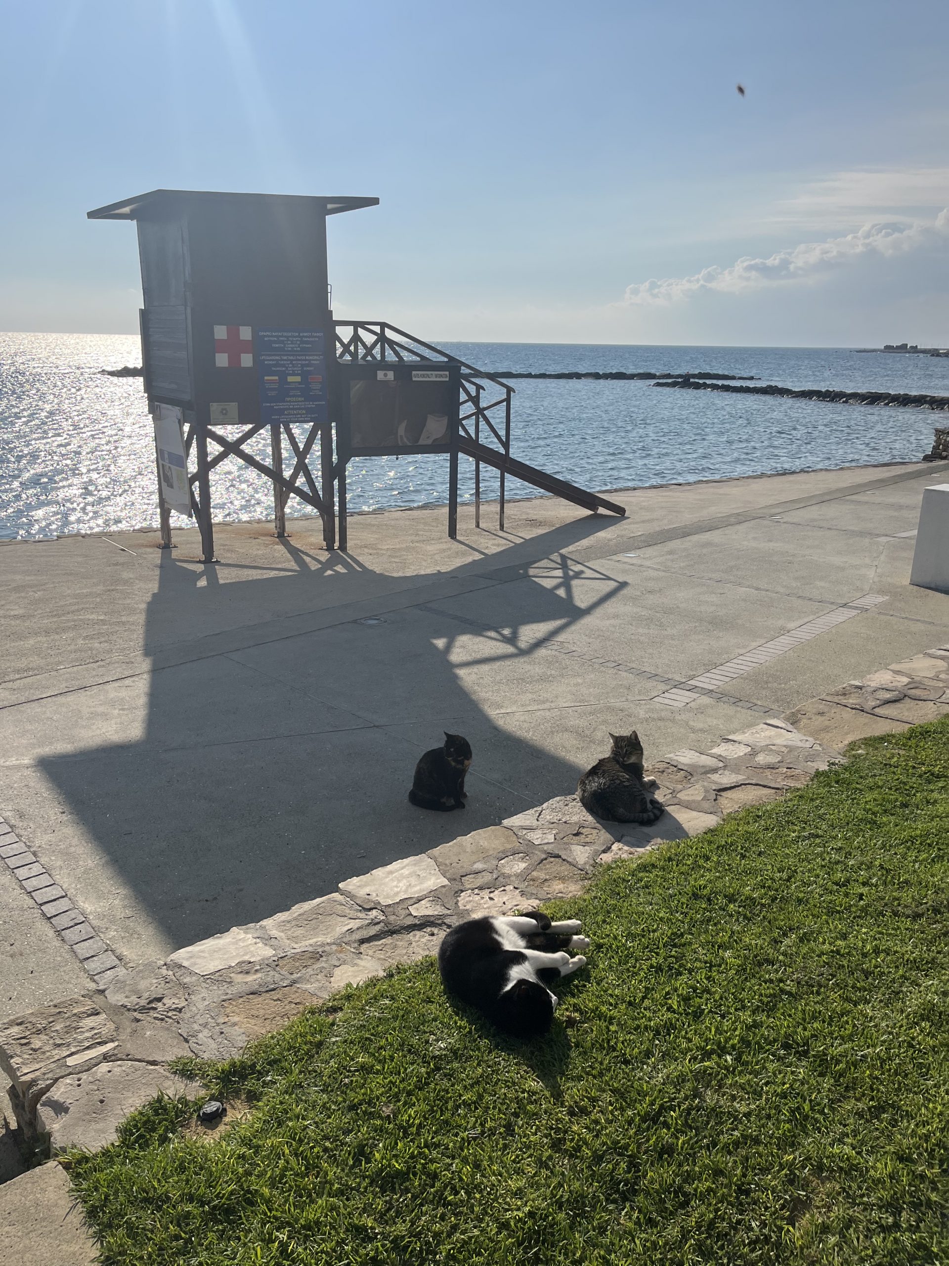 Paphos and Cyprus in general, appears to be a Shangri-La ,for cats. Whether owned by an individual or business, or living life sans owner, cats are out and about enjoying the Cypriot lifestyle. Some in fact can only be described as plump or jumbo. Food and water are left out for them outside of both residences and businesses. The cats lounge about and seem to enjoy being on the seaside promenade as much as the people. As to the tourists, Cyprus takes the crown in my travels for diversity of origins. British of course, as it is a former colony like Malta; Greeks and Turks as well, given the connections to both Greece and Turkey; and then western and eastern Europeans seeking sun, plus visitors from the Middle East as it is in right in the neighborhood – Israel is less than a hour’s flight away is my understanding.