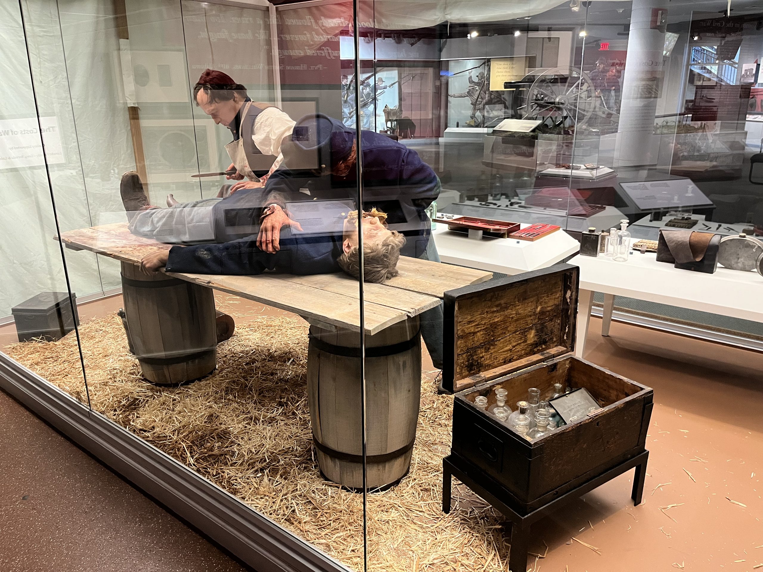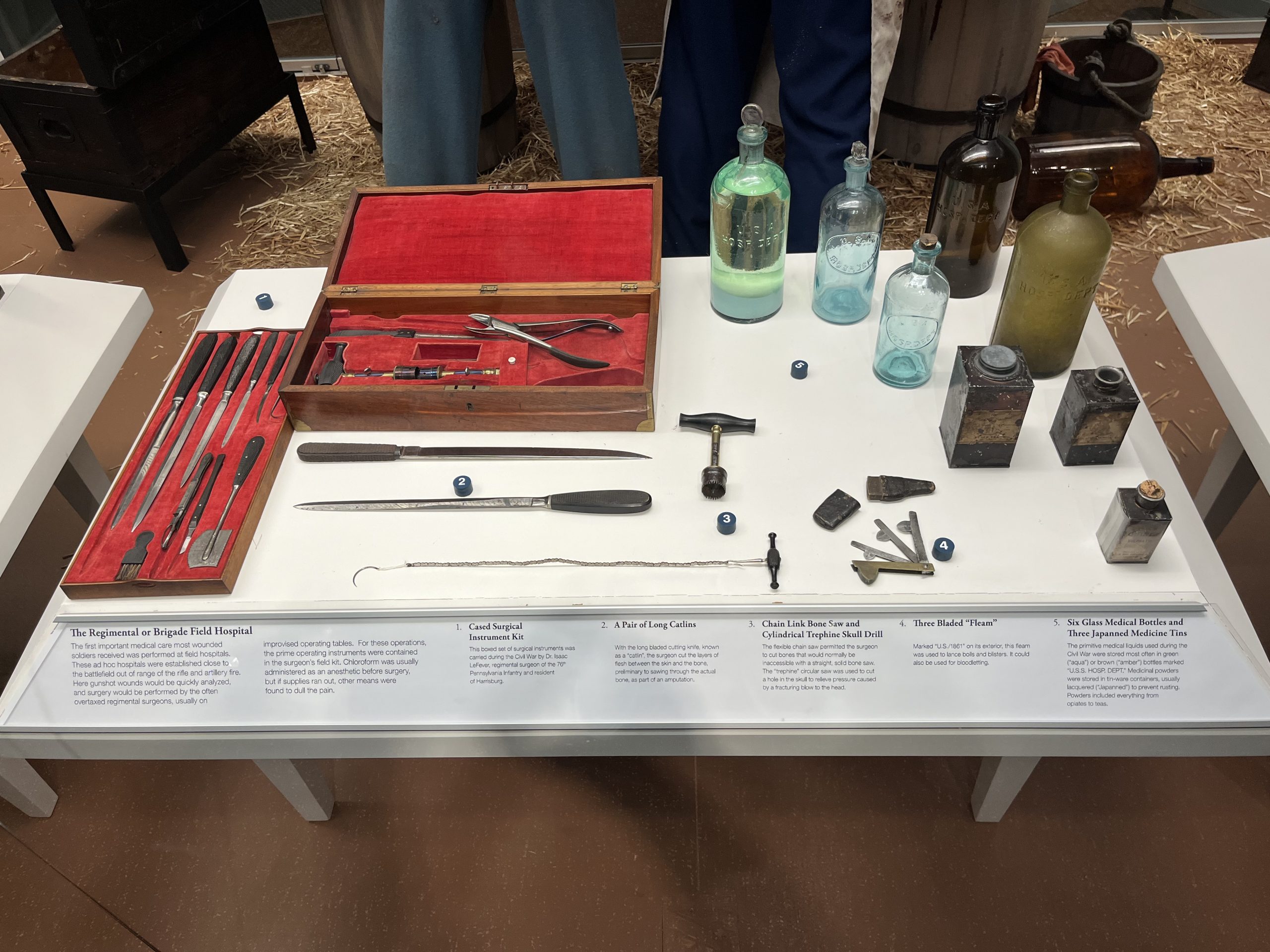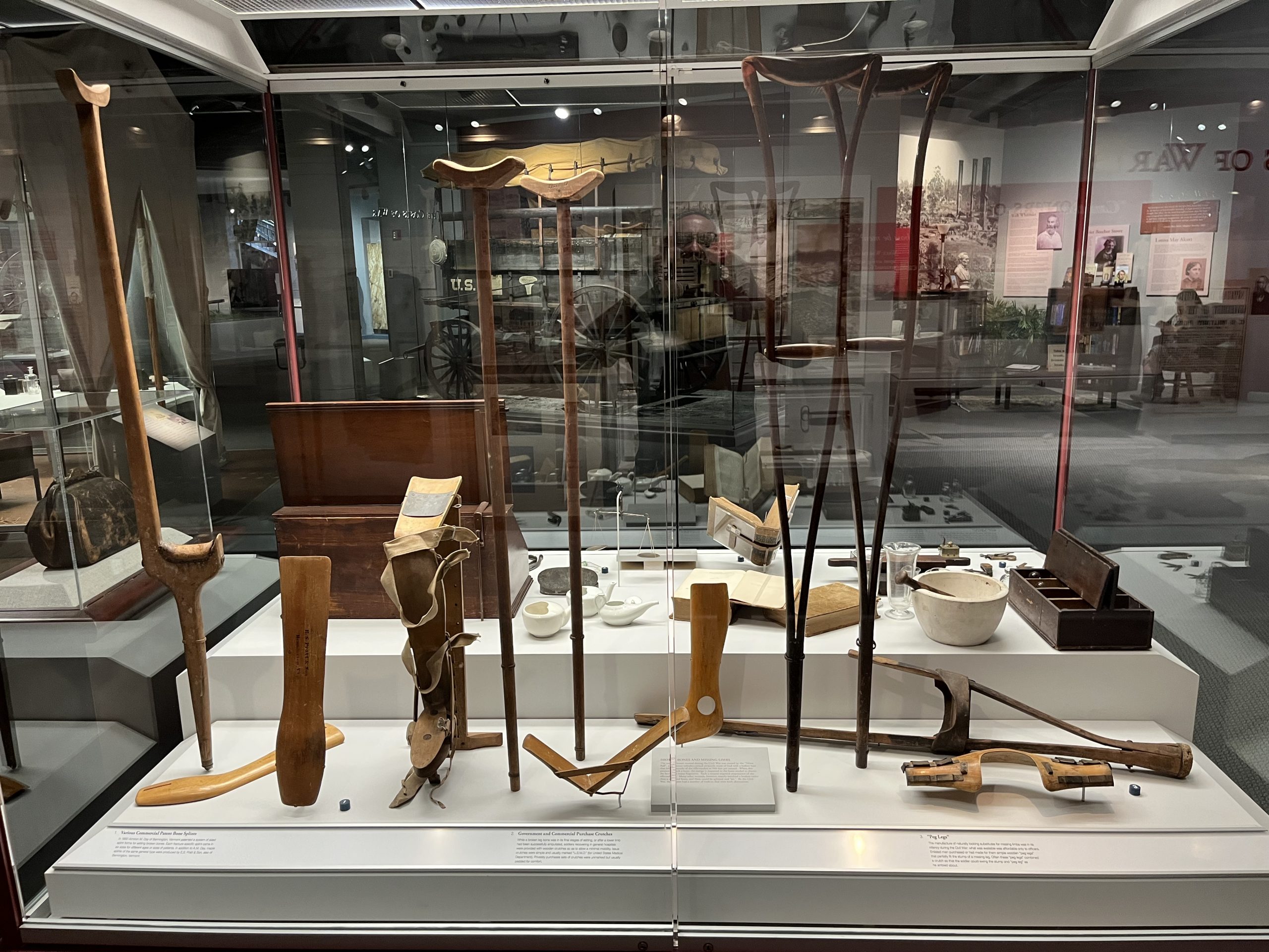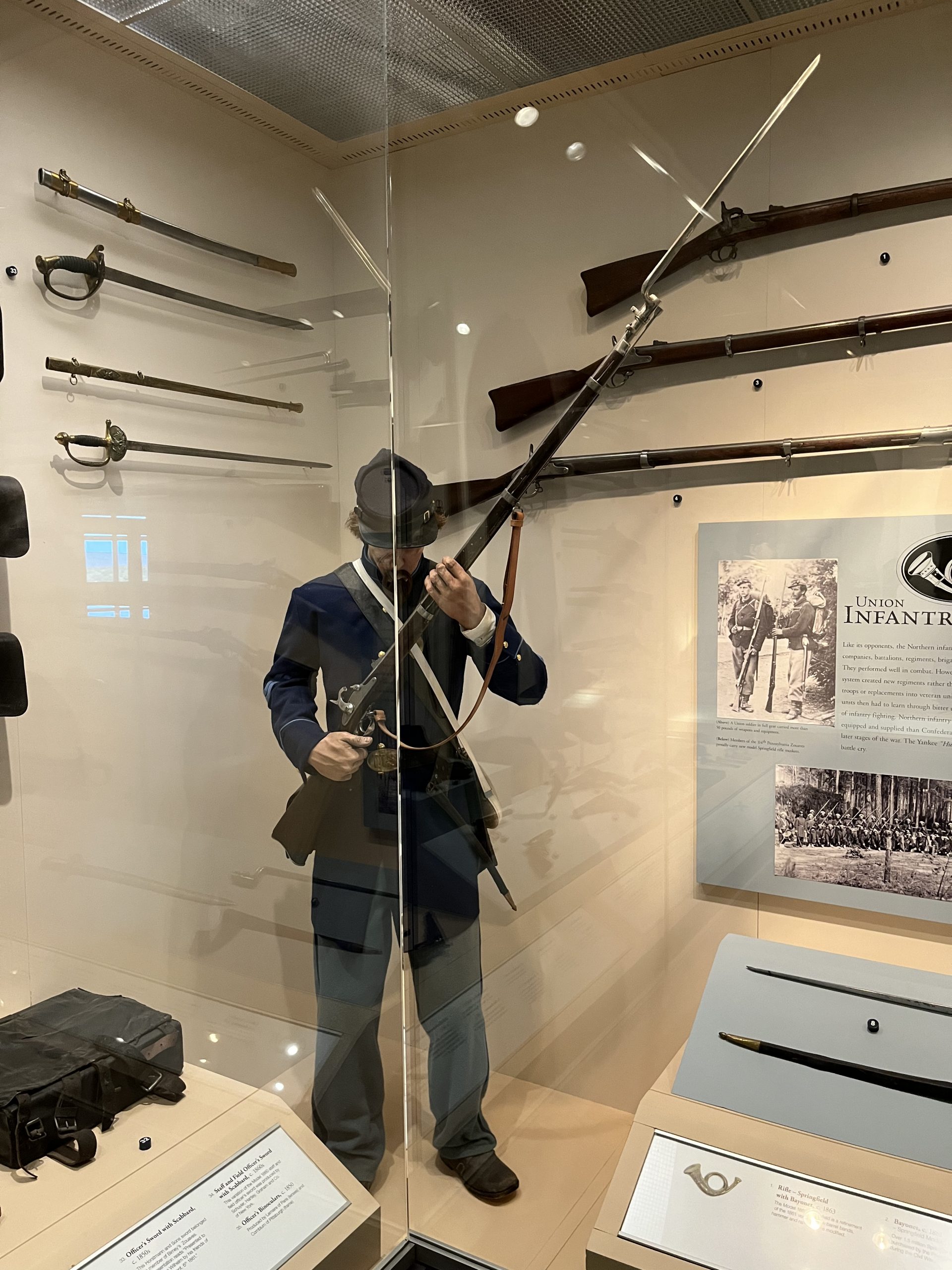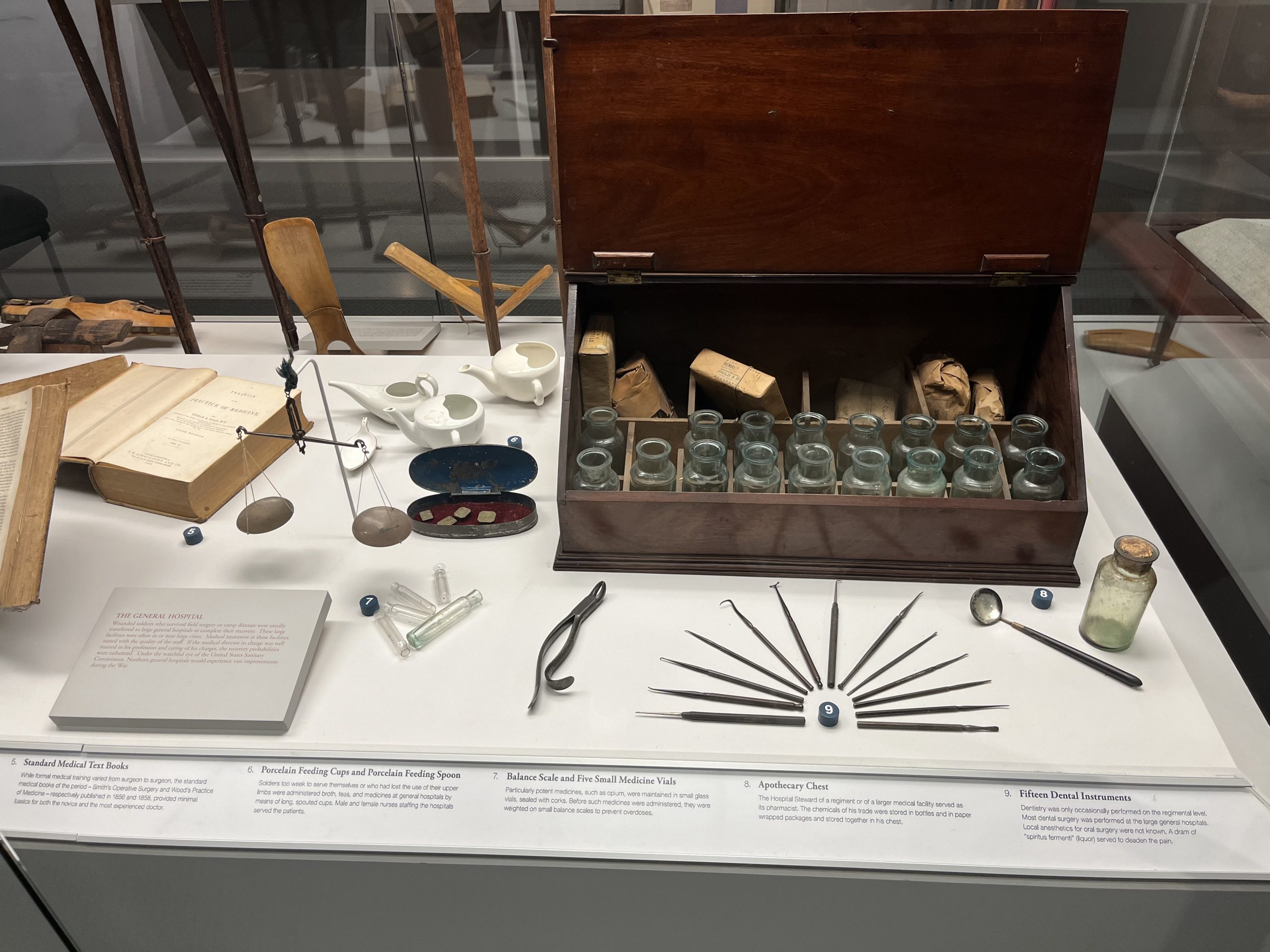 There are exhibits which do a phenomenal job of showing the uniforms and equipment of the various military branches of both the Union and Confederate forces: infantry, cavalry, artillery, and navy. Also, exemplary, in my opinion, are the exhibits presenting the state of medical care during the war. Lastly, there are a couple of photos towards the end of the gallery showing informational placards on the “War of Firsts”. Some of these I captured in photos of exhibits, but not all, so read through the placards in these two photos. They are extremely interesting – as in I didn’t know that!