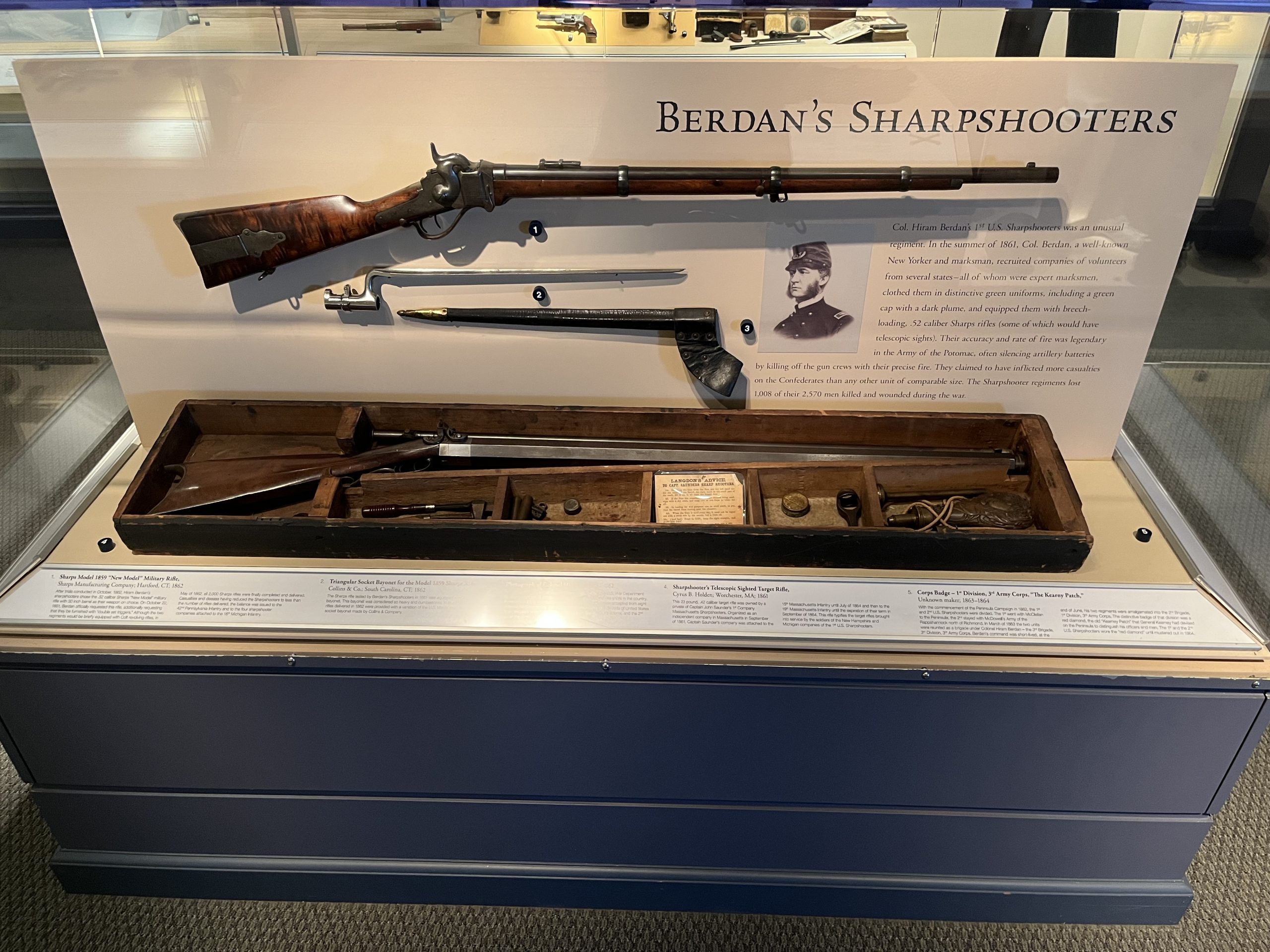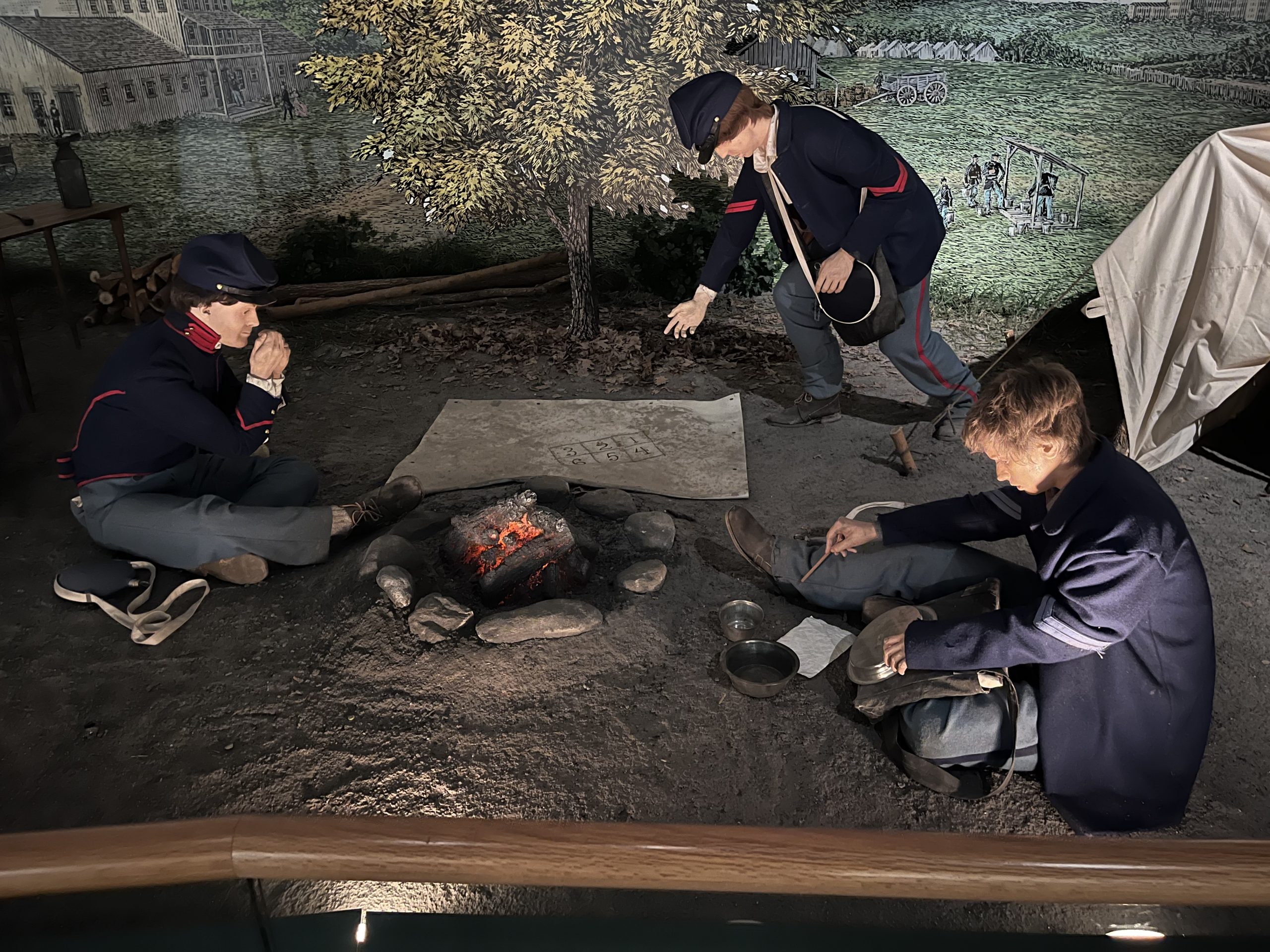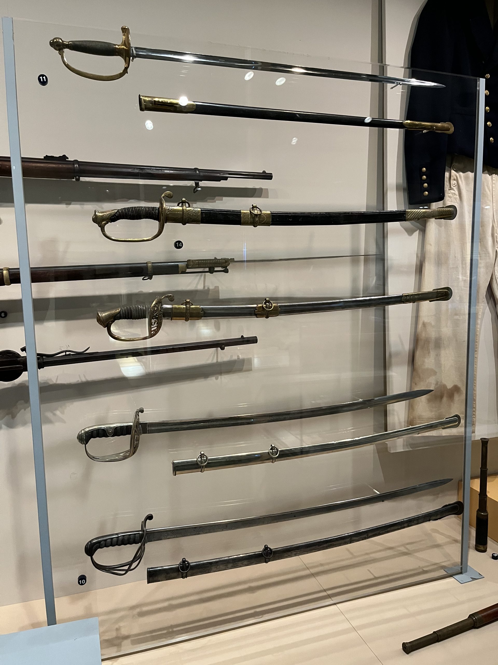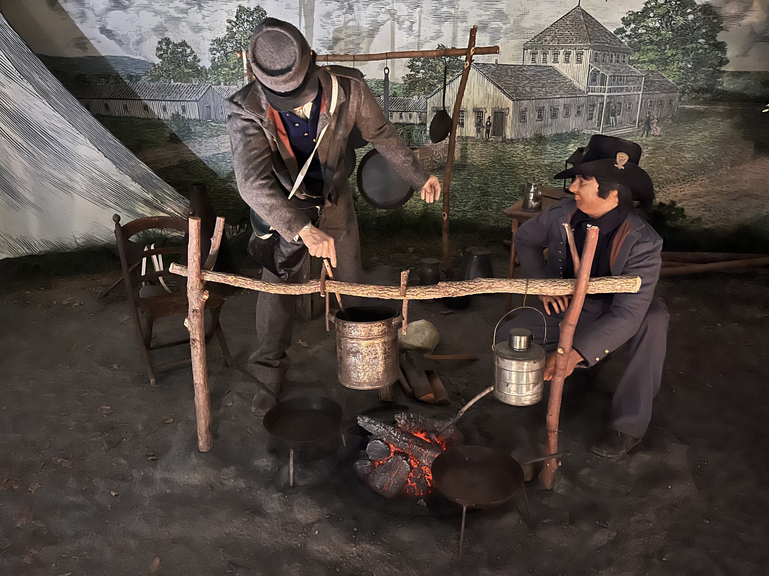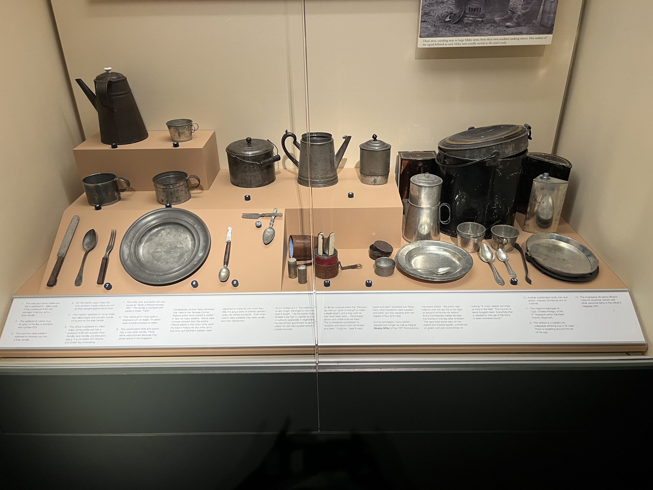 There are exhibits which do a phenomenal job of showing the uniforms and equipment of the various military branches of both the Union and Confederate forces: infantry, cavalry, artillery, and navy. Also, exemplary, in my opinion, are the exhibits presenting the state of medical care during the war. Lastly, there are a couple of photos towards the end of the gallery showing informational placards on the “War of Firsts”. Some of these I captured in photos of exhibits, but not all, so read through the placards in these two photos. They are extremely interesting – as in I didn’t know that!