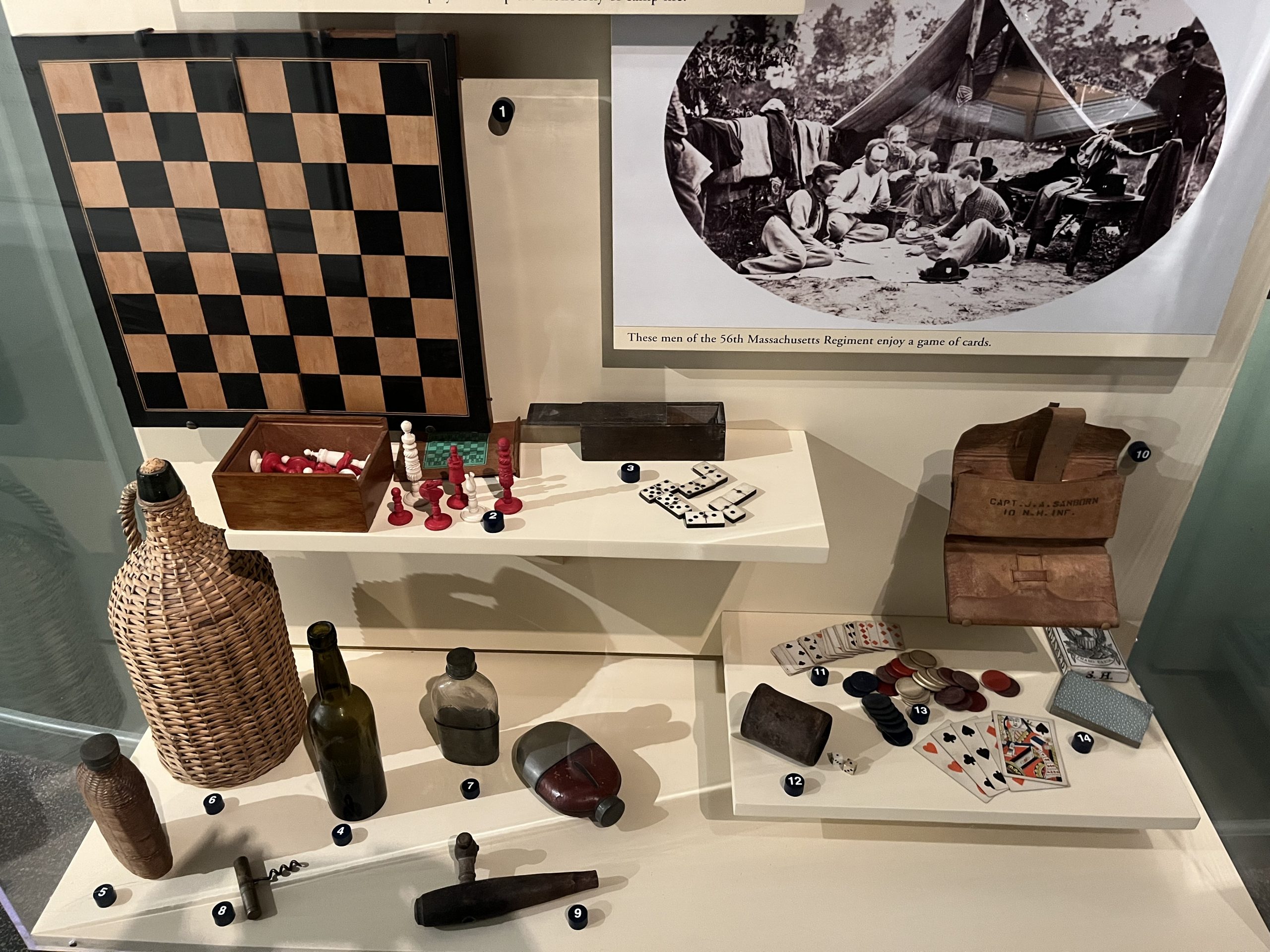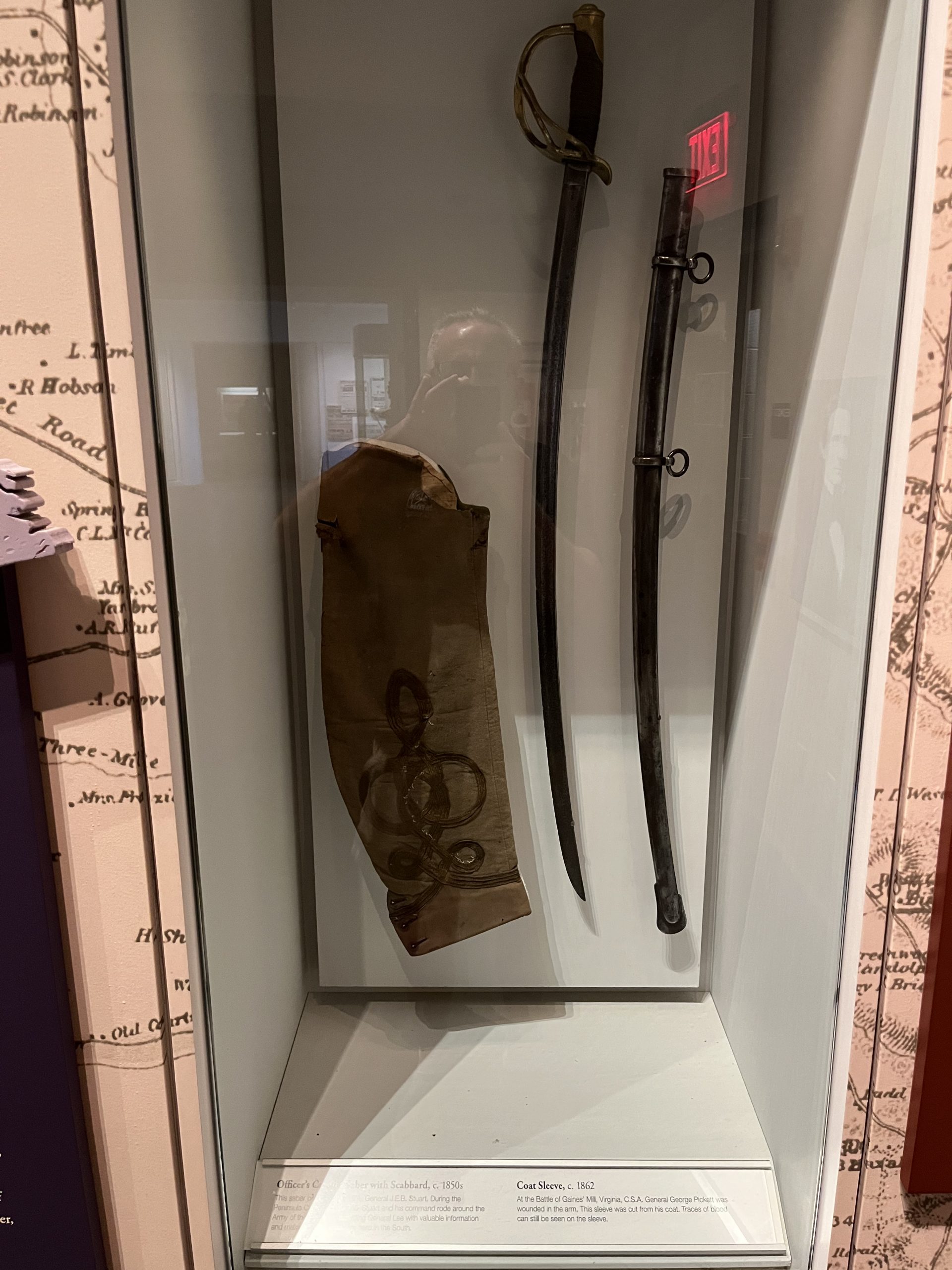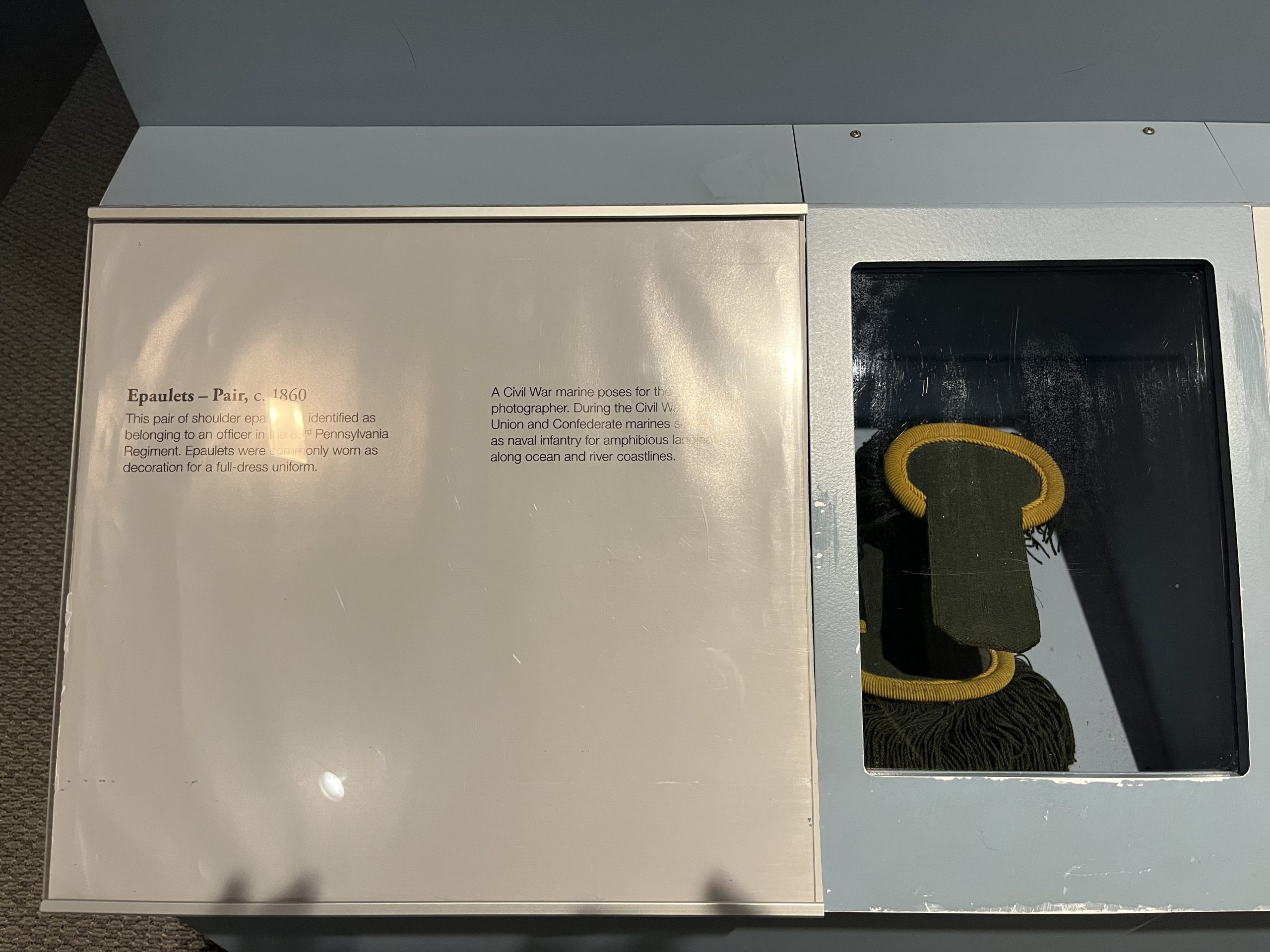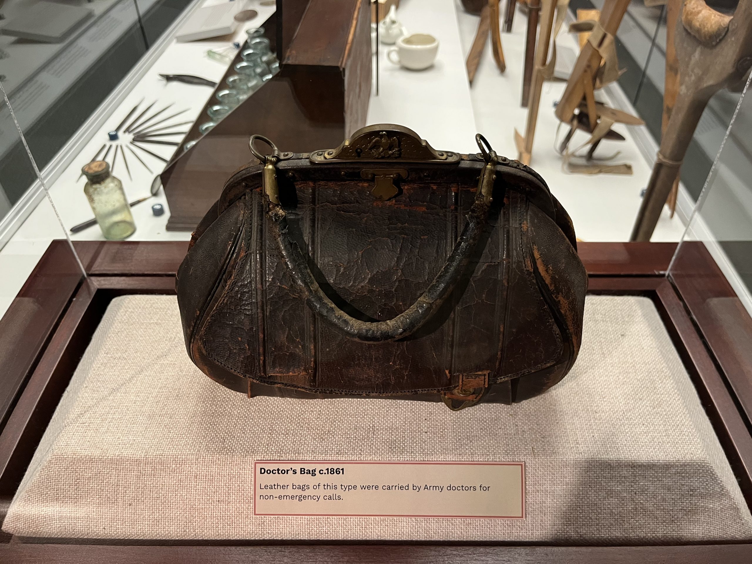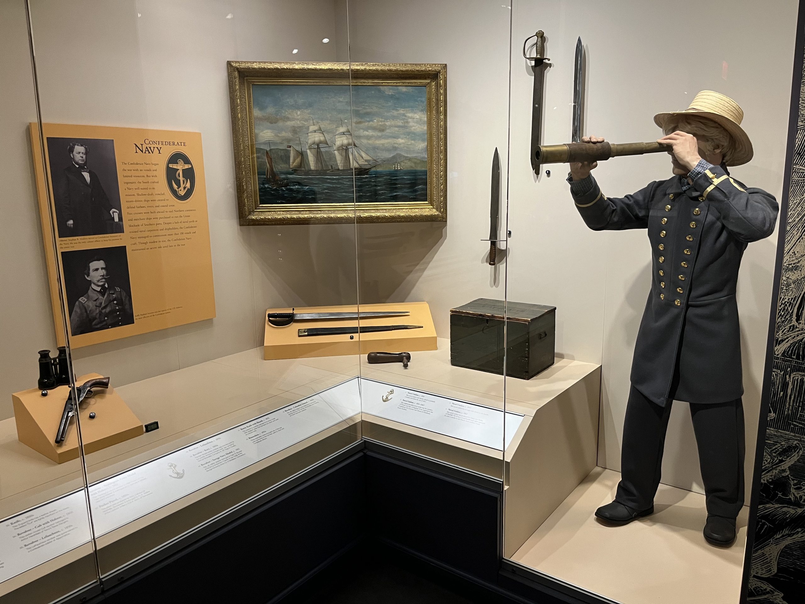 There are exhibits which do a phenomenal job of showing the uniforms and equipment of the various military branches of both the Union and Confederate forces: infantry, cavalry, artillery, and navy. Also, exemplary, in my opinion, are the exhibits presenting the state of medical care during the war. Lastly, there are a couple of photos towards the end of the gallery showing informational placards on the “War of Firsts”. Some of these I captured in photos of exhibits, but not all, so read through the placards in these two photos. They are extremely interesting – as in I didn’t know that!