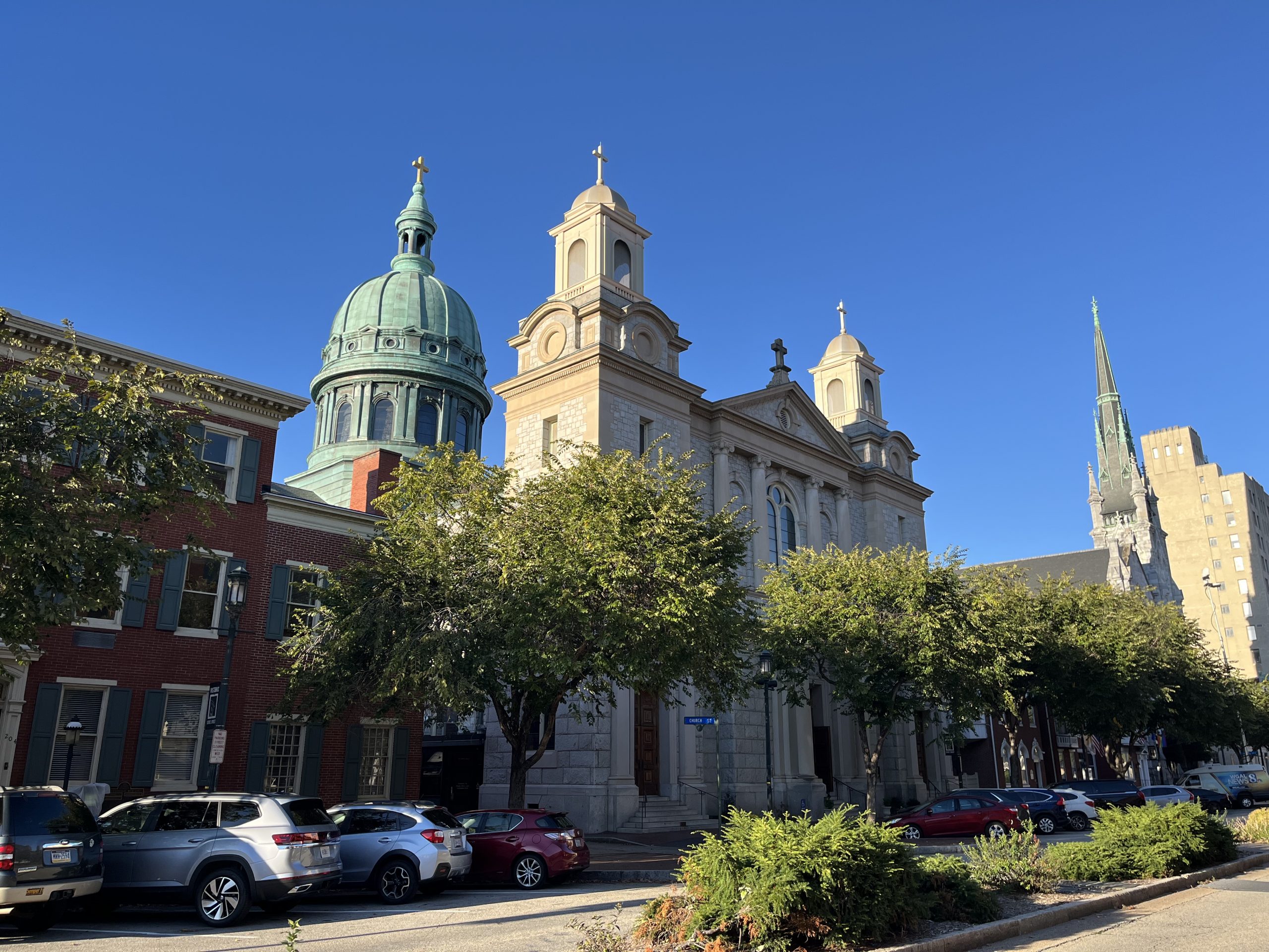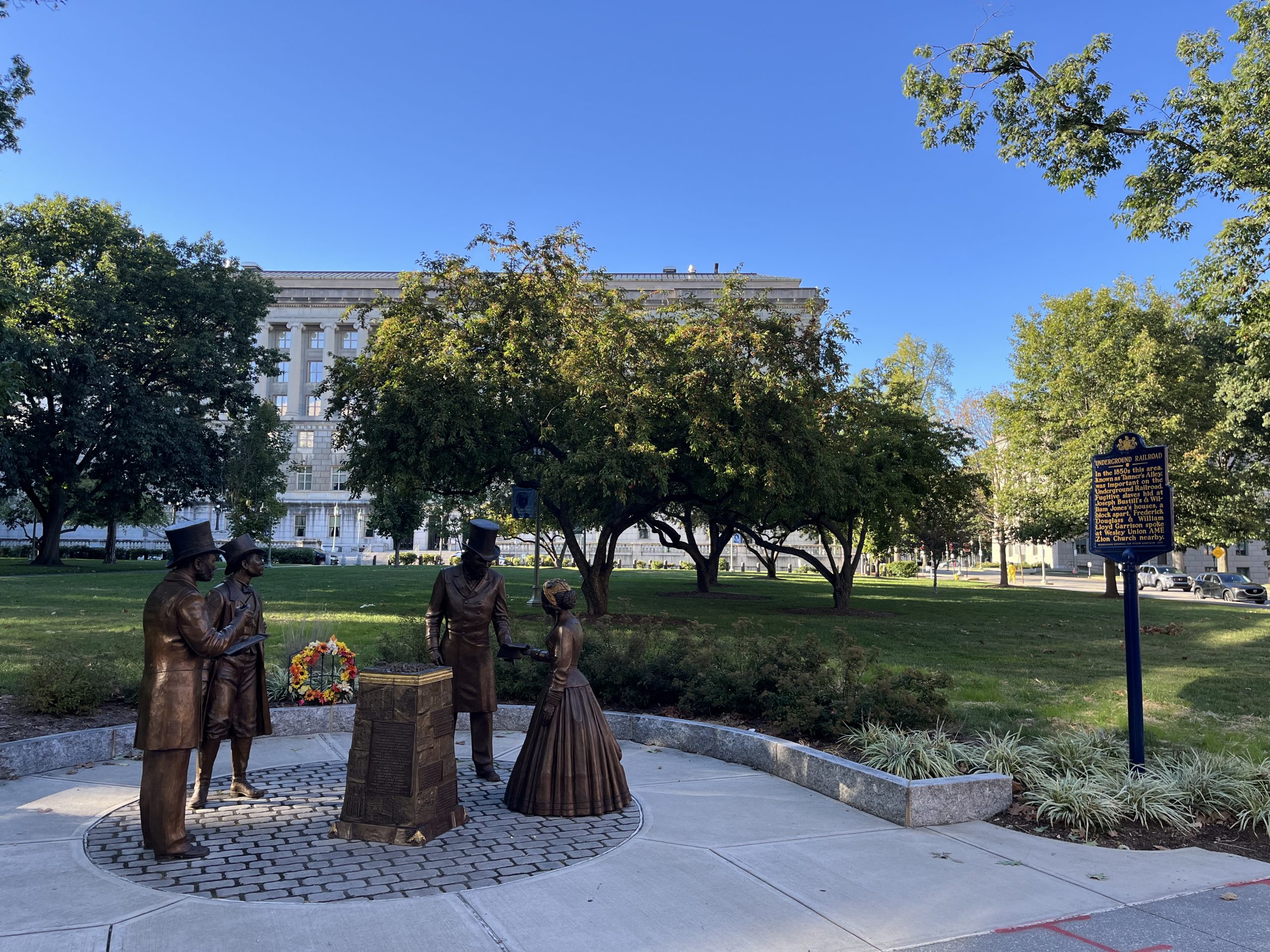Also, went to downtown Harrisburg to grab a few pics of the state capitol and other buildings nearby. The bronze figures mark the area known as Tanner’s Allery which was connected with the Underground Railway for helping runaway slaves. The bridge behind the capital with the twin pylons is the Soldiers and Sailors Memorial Bridge. And some impressive churches are close by – Roman Catholic, United Methodist, and Presbyterian, respectively. You know where to find the photos.