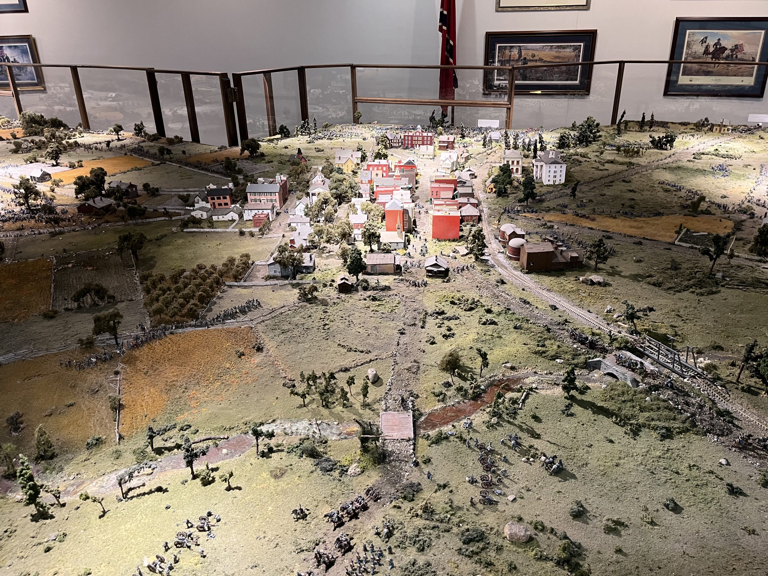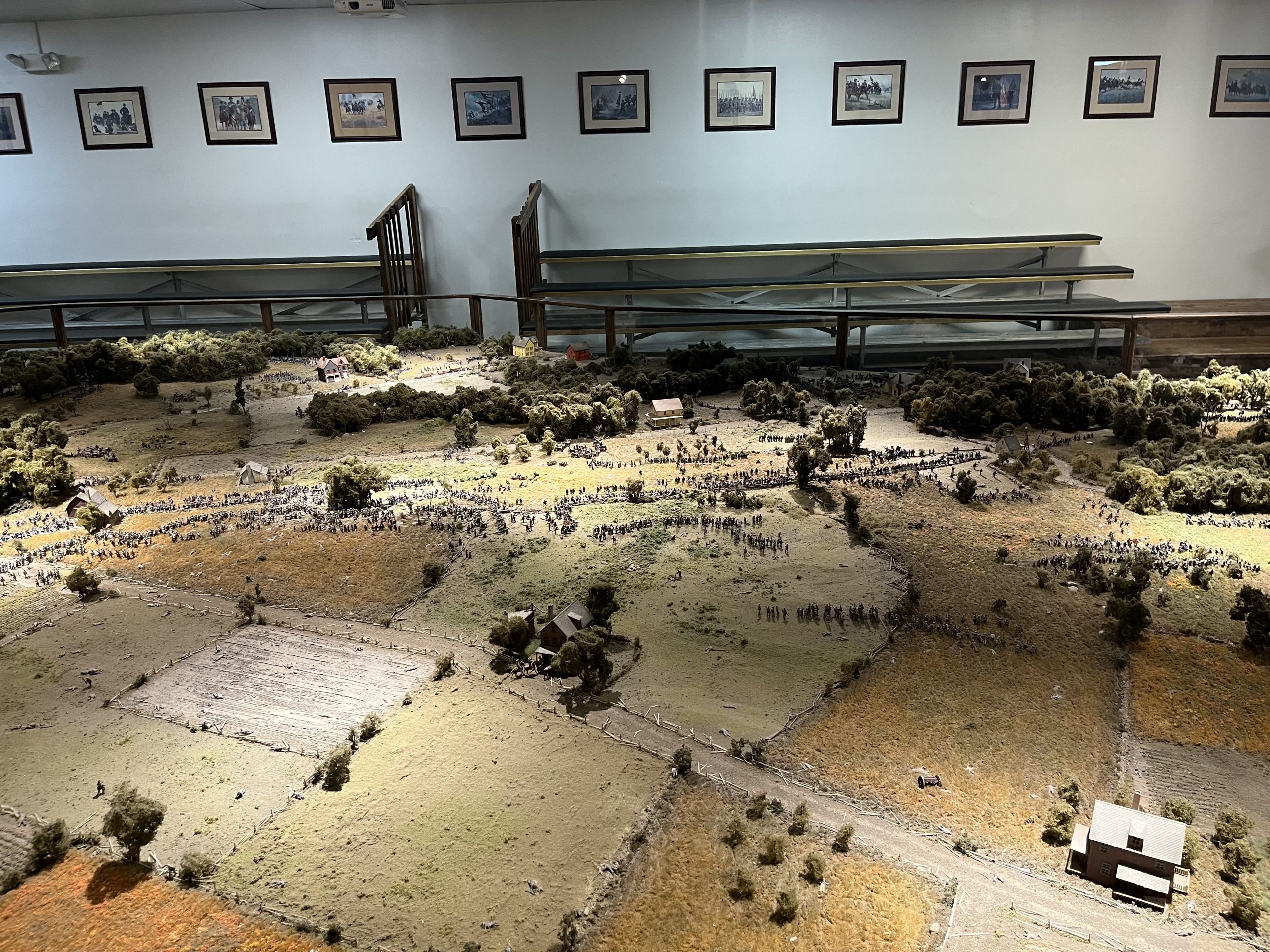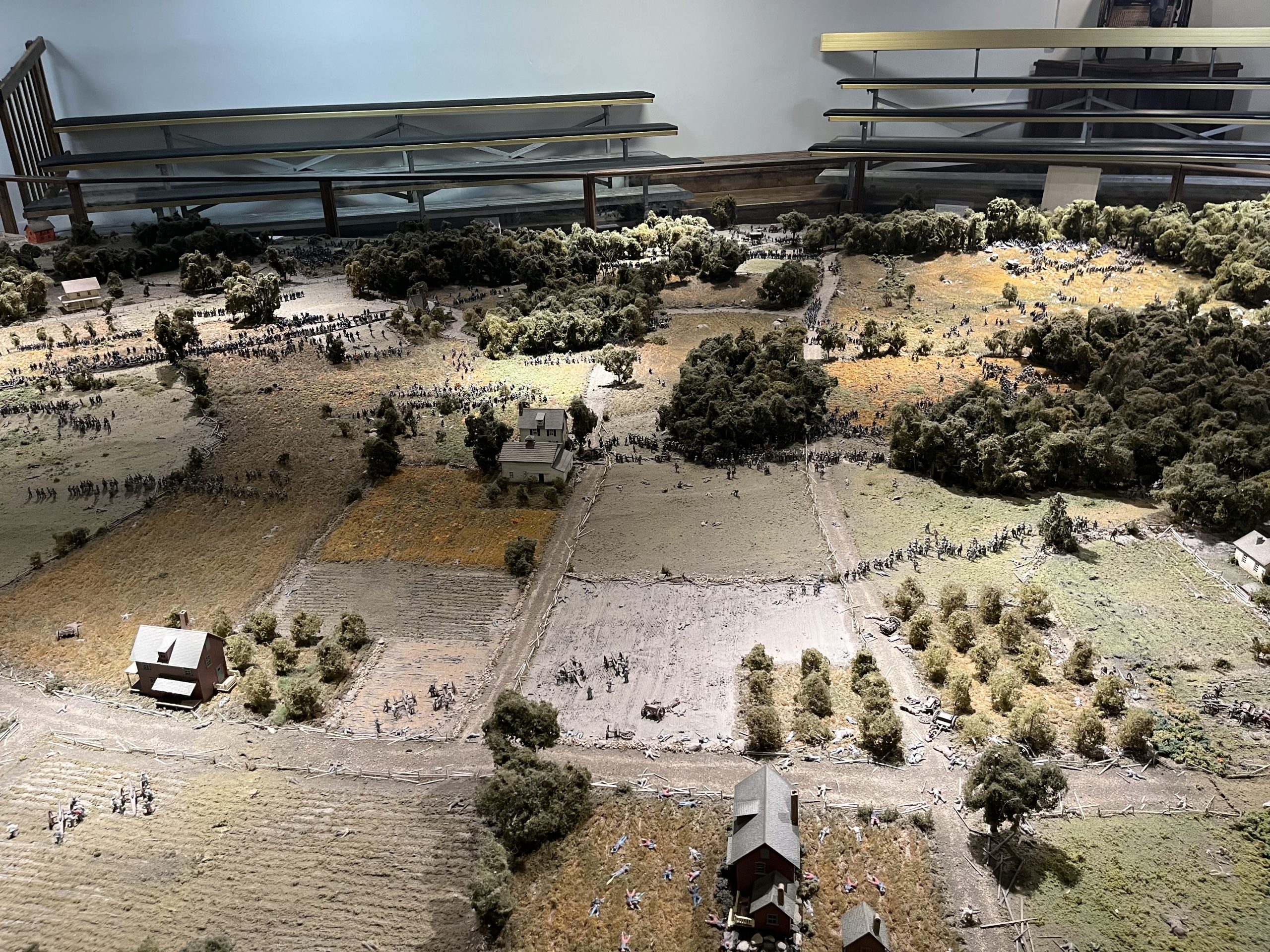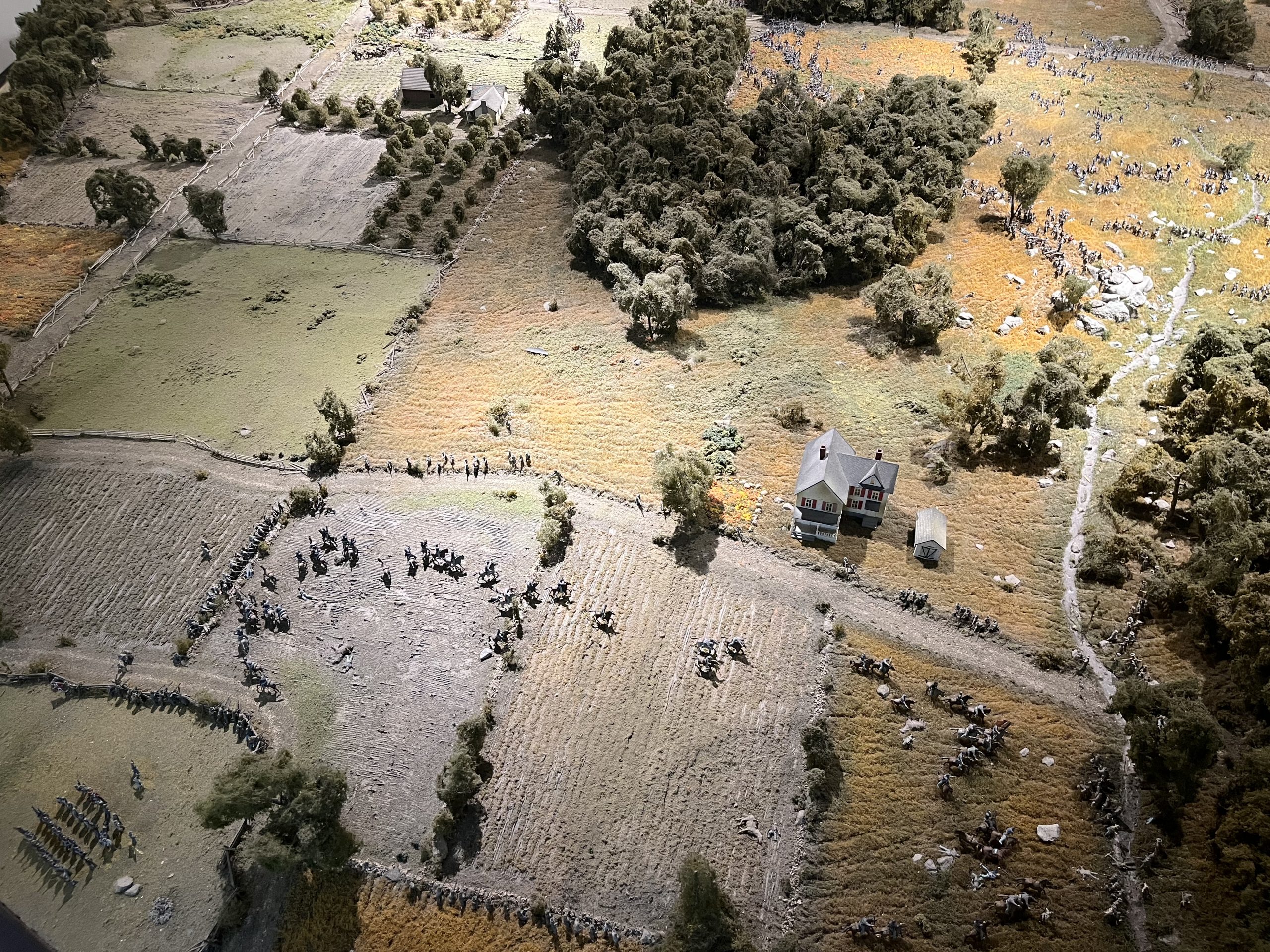 The Gettysburg Diorama in Gettysburg is a huge diorama depicting the Battle of Gettysburg. The room that the diorama is housed in has bleachers where the audience sits for a showing. The pre-recorded presentation is 40 minutes in length and provides information and commentary as well as good use of spotlighting to move you around the diorama to see the flow of the battle as it unfolded.