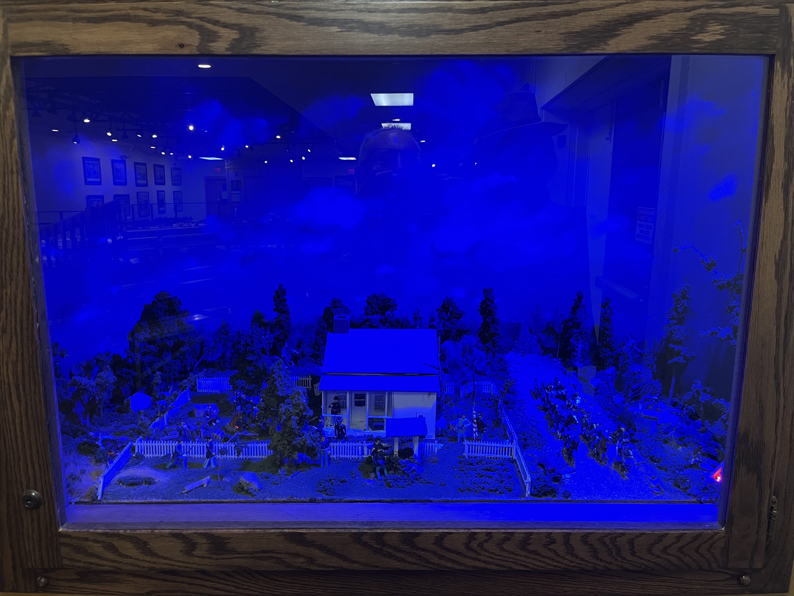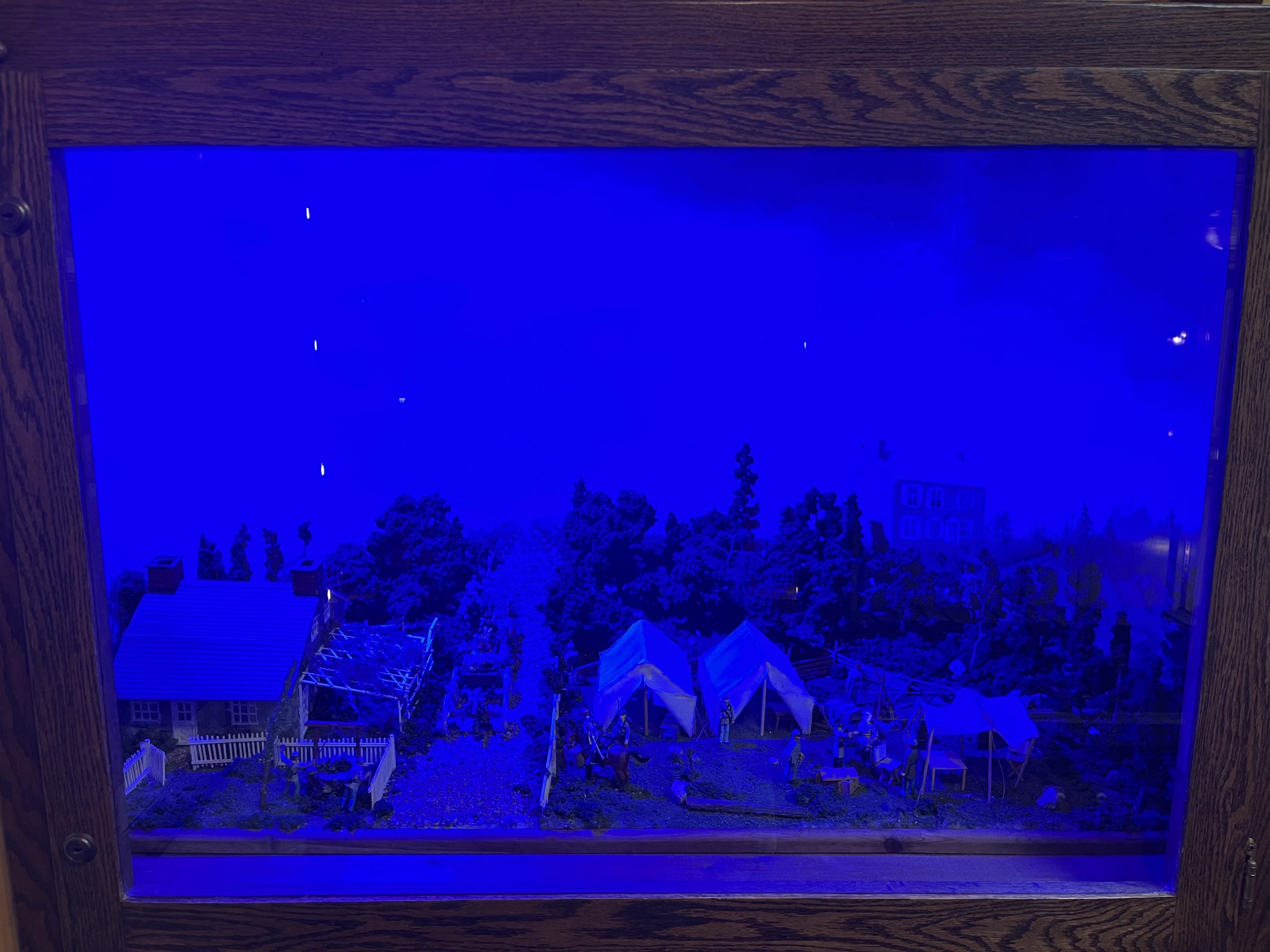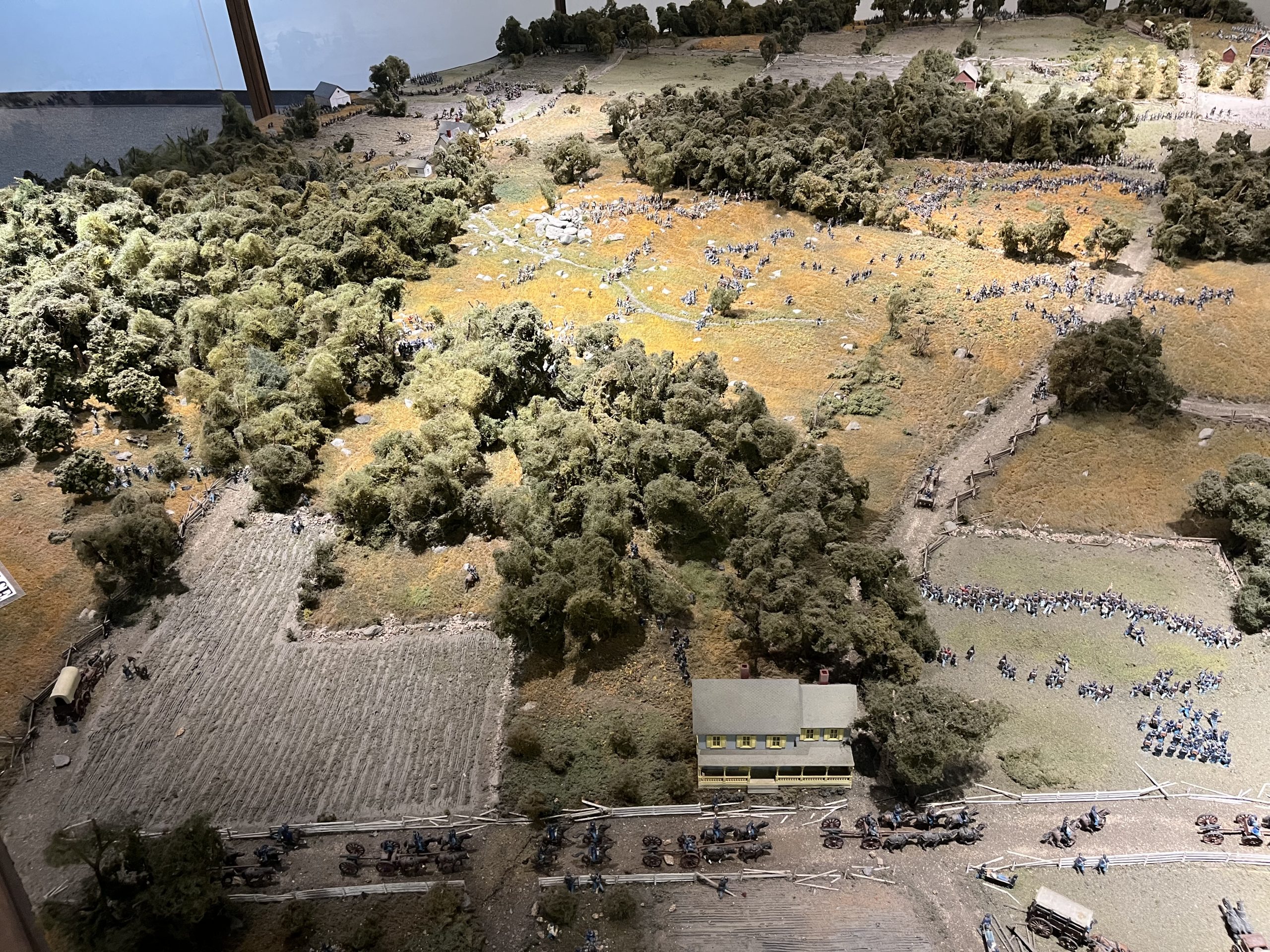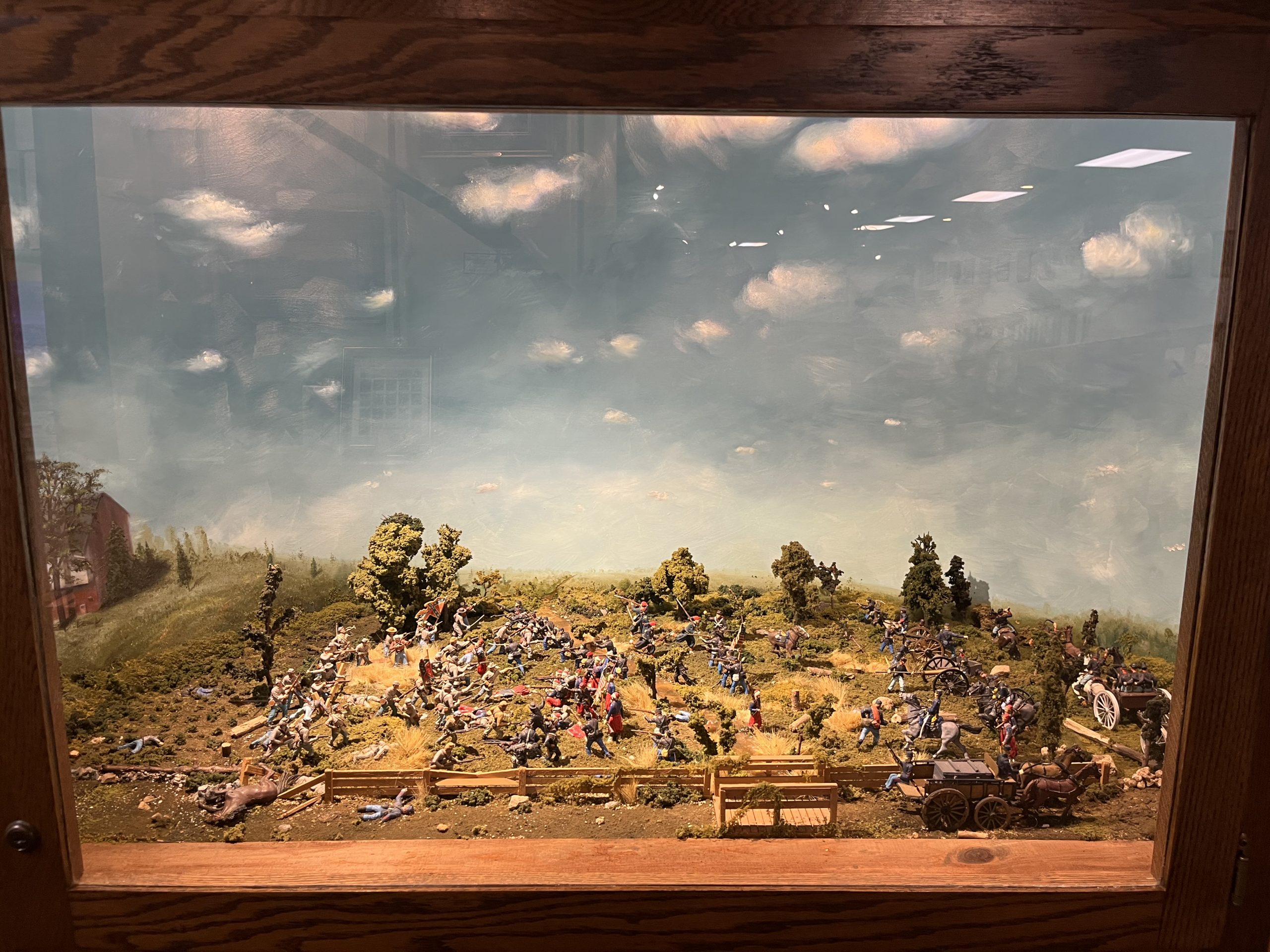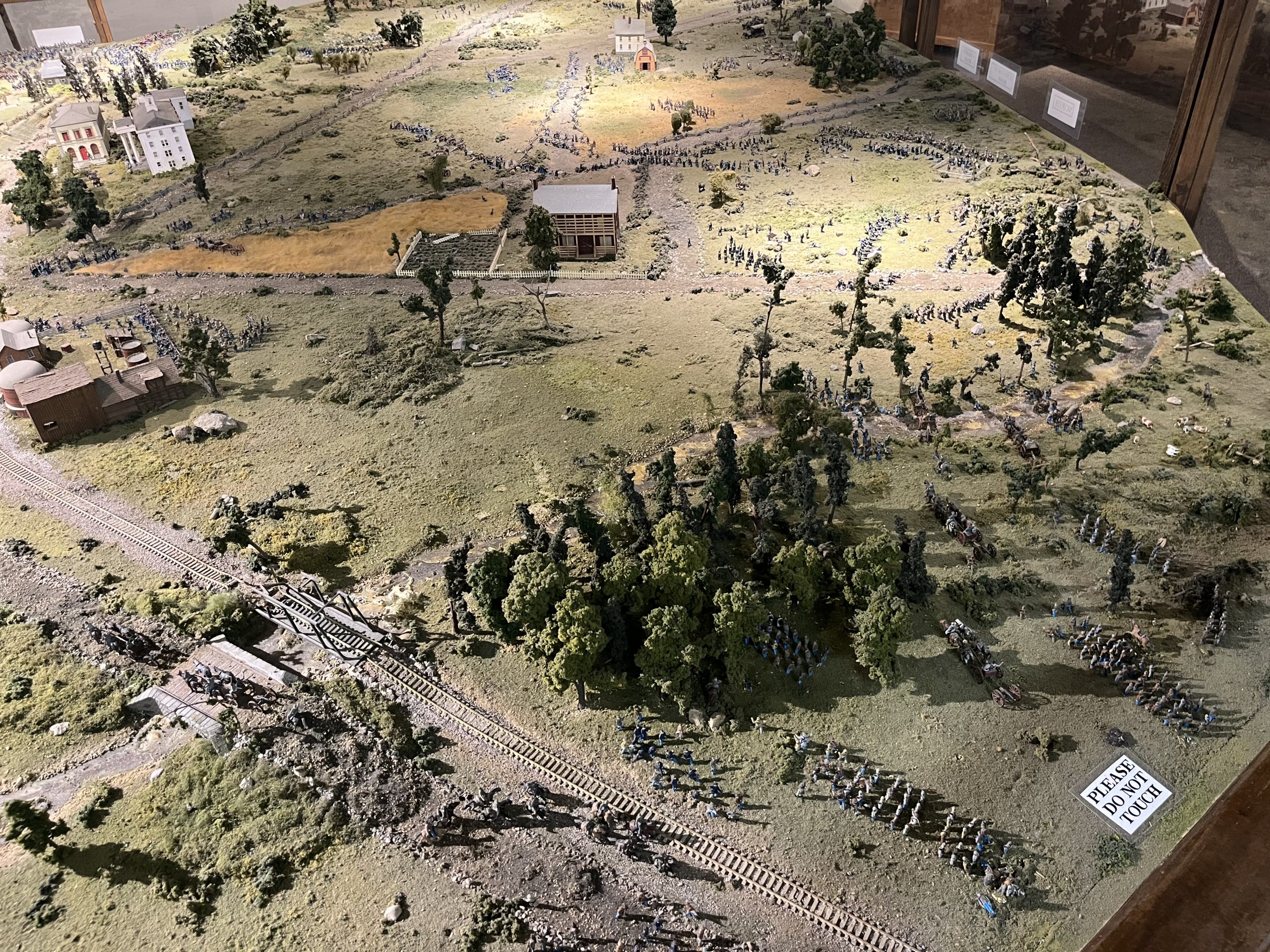 The Gettysburg Diorama in Gettysburg is a huge diorama depicting the Battle of Gettysburg. The room that the diorama is housed in has bleachers where the audience sits for a showing. The pre-recorded presentation is 40 minutes in length and provides information and commentary as well as good use of spotlighting to move you around the diorama to see the flow of the battle as it unfolded.