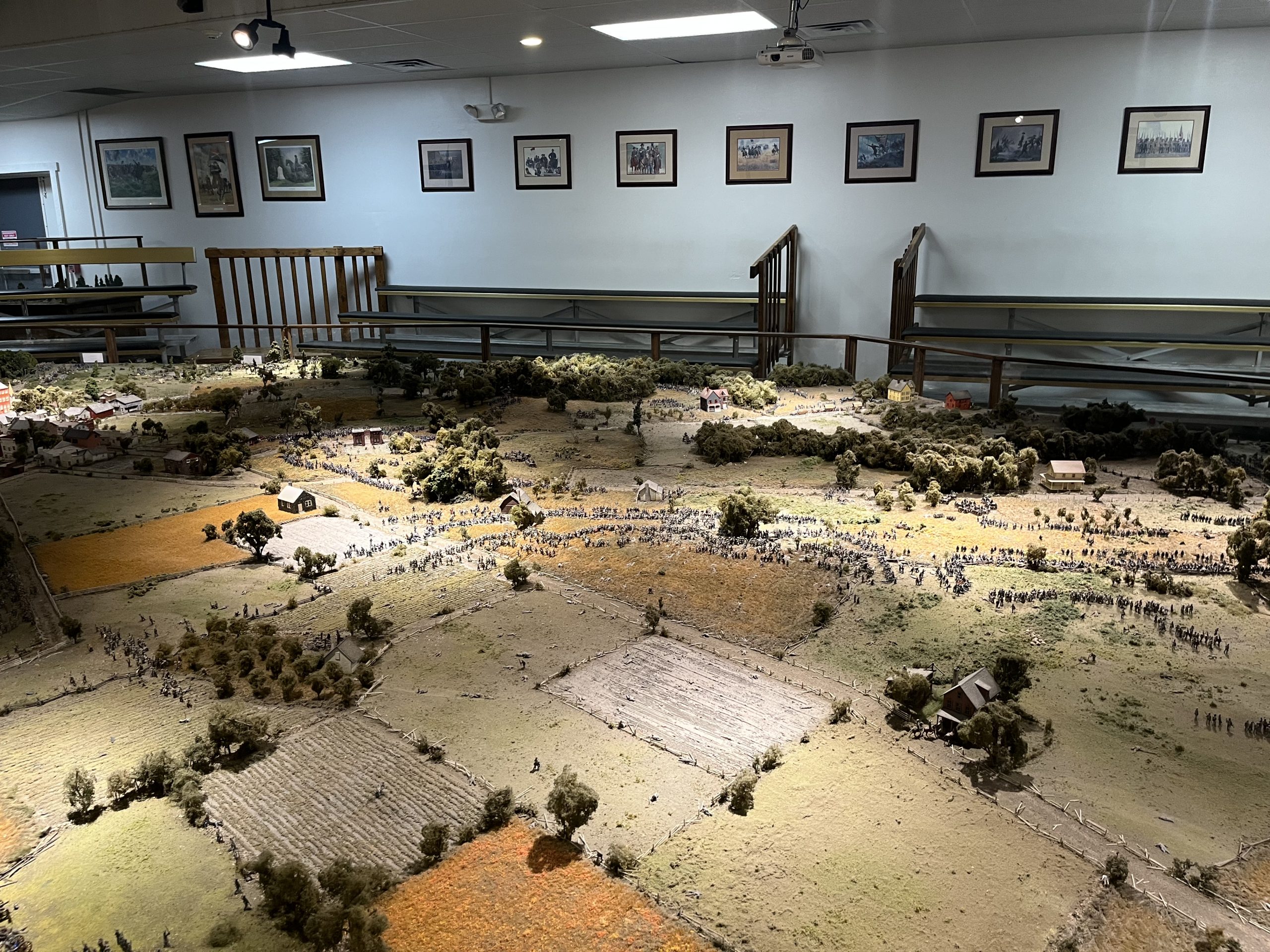 Time is also provided both before and after the presentation to examine the diorama in detail. After the presentation and the handful of other attendees departed, I shot the video below showing the diorama in roughly the same direction as the battle took place. The gallery below has photos showing some smaller separate dioramas followed by photos of sections of the main diorama.
